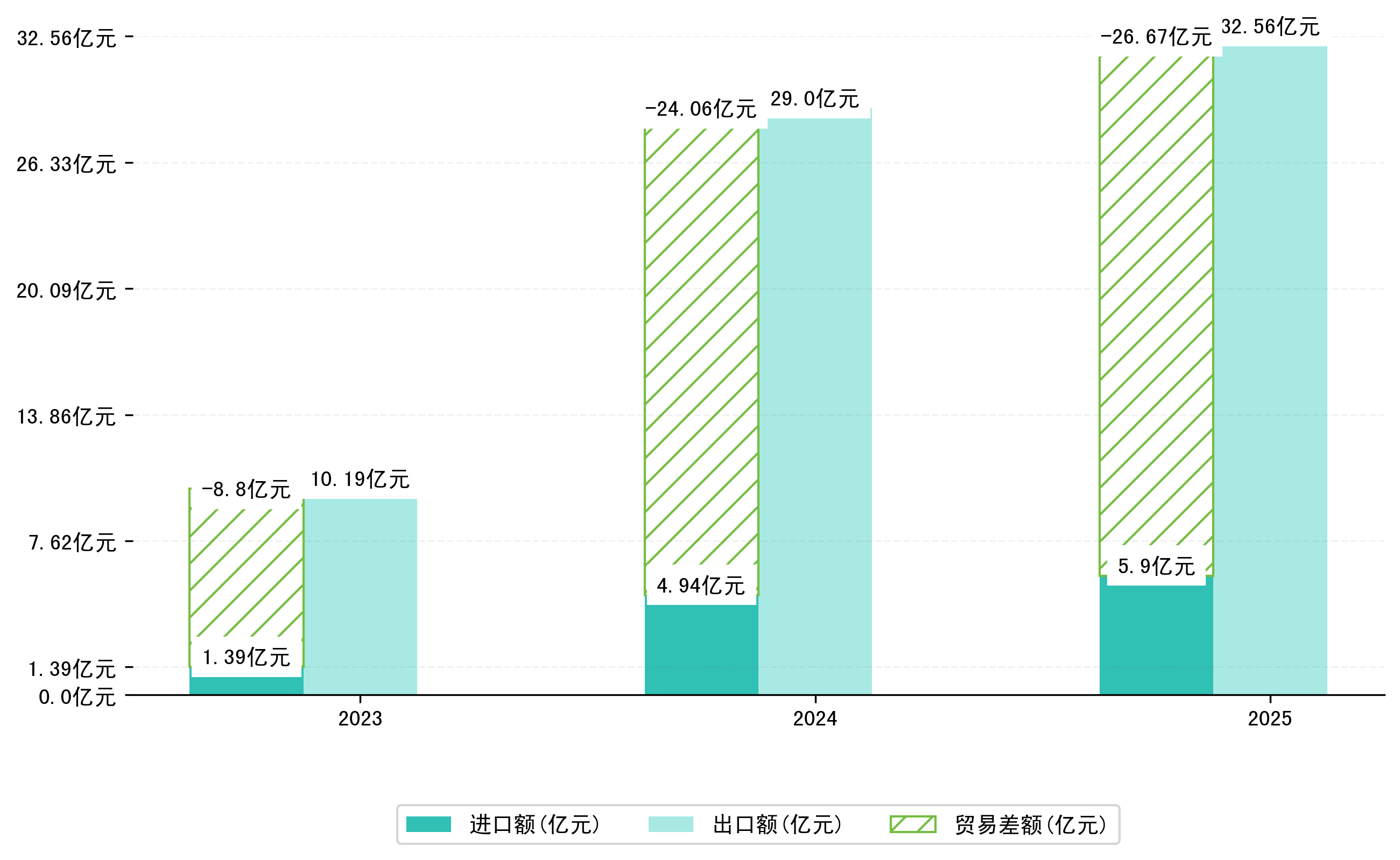 以人民币计,2025年5月西藏自治区贸易差额为6,2835,2994万元(贸易顺差),相比上月增加了1,8254,8384万元,即2524,0529万美元;相比上年同期增加了3,5095,1624万元,同比增加126.51%。