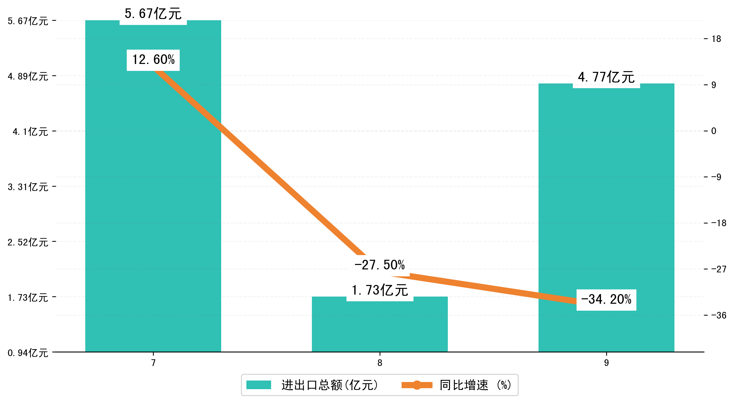 2025年9月西藏自治区进出口总额及进出口差额统计分析
