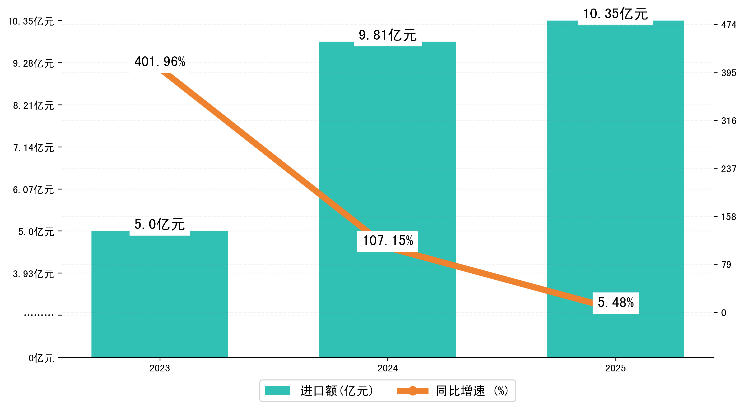 以人民币计,2025年1-9月西藏自治区进口额为10,3492.3913万元,相比上年同期增加了5381.2966万元,同比增加了5.30%。