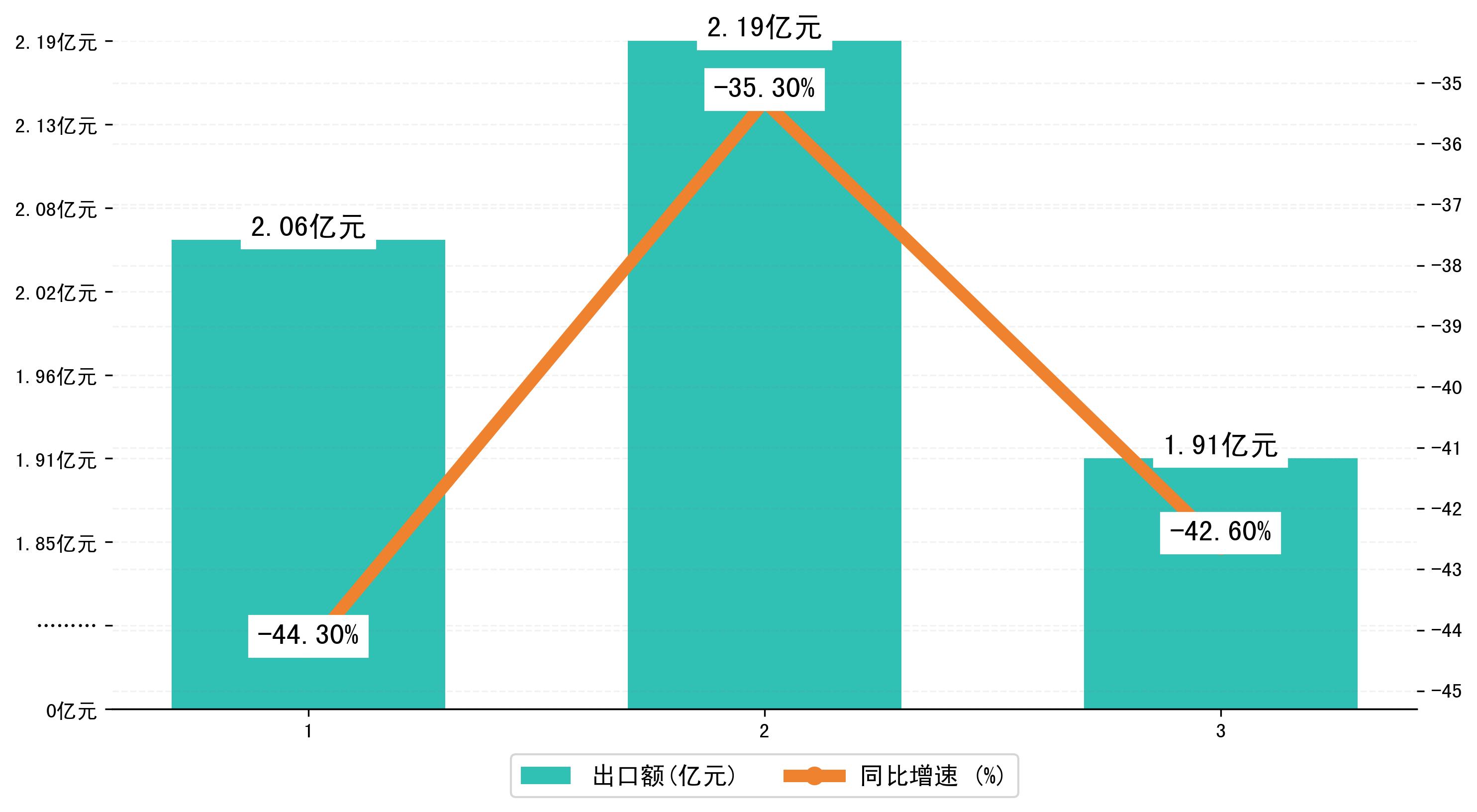 以美元计,2023年3月西藏自治区出口额为2746.2702万美元,相比上月减少了488.0206万美元;相比上年同期减少了3795.7103万美元,同比减少-47.00%。