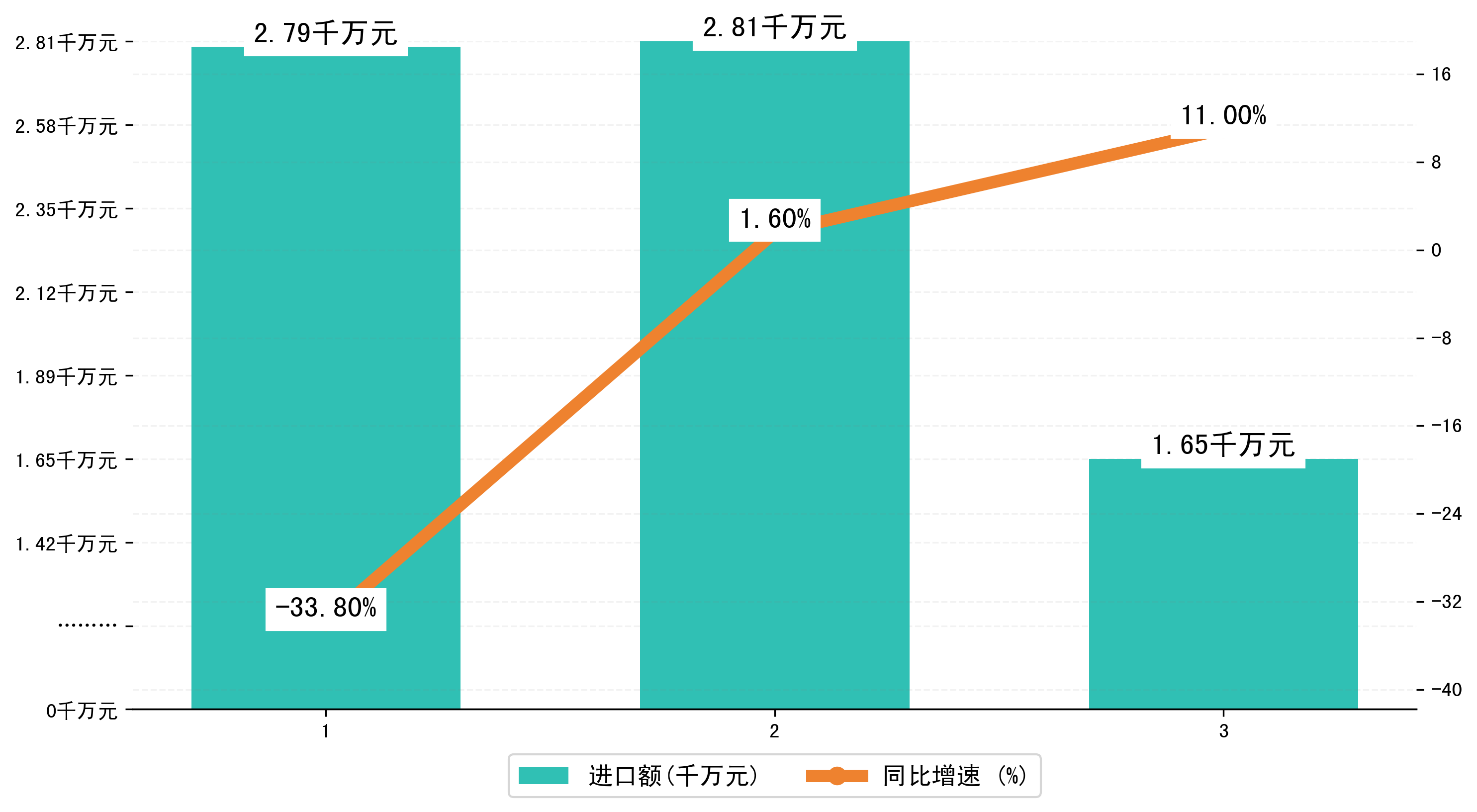 以美元计,2023年3月西藏自治区进口额为241.1406万美元,相比上月减少了173.737万美元;相比上年同期增加了79.9457万美元,同比增加3.00%。