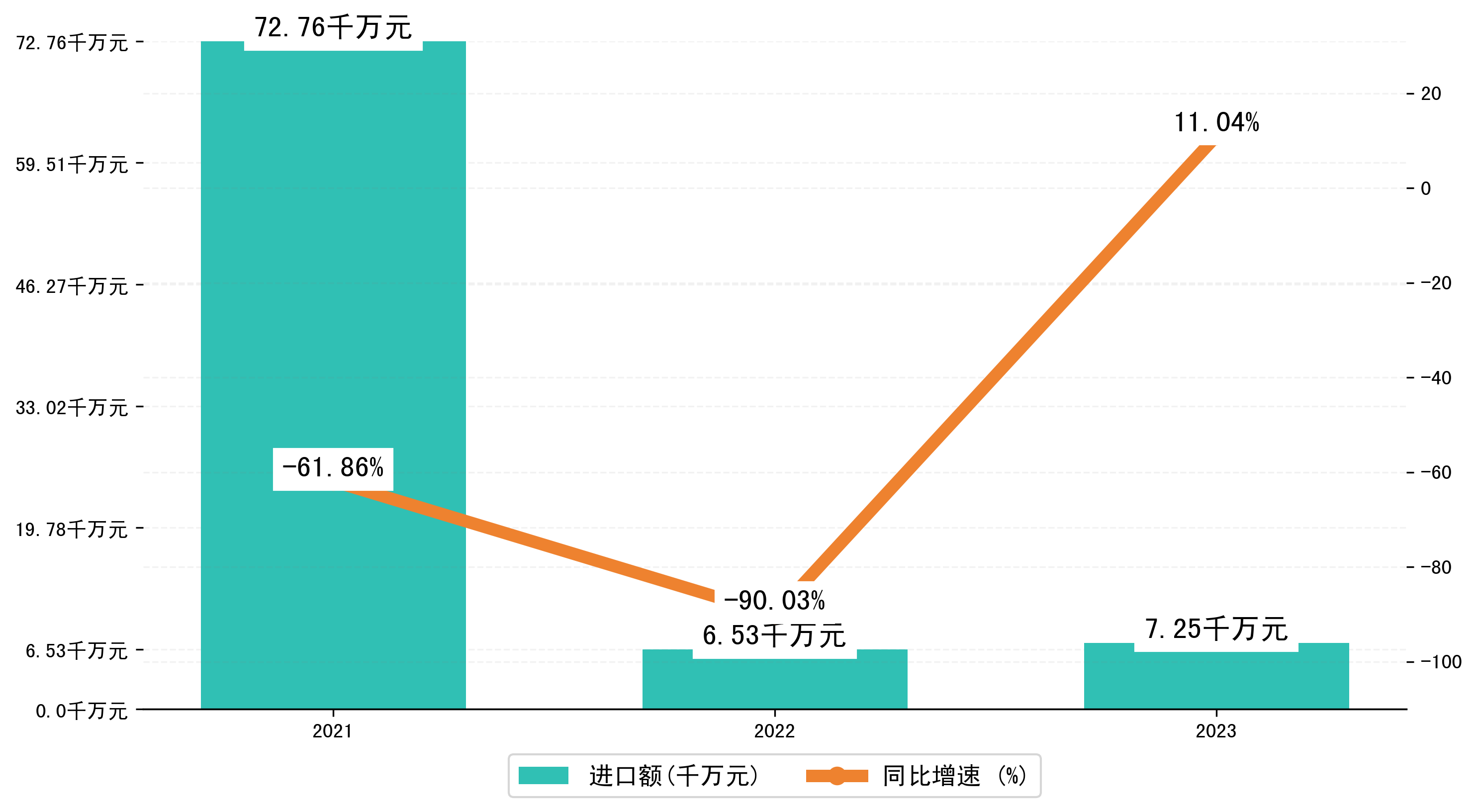 以美元计,2023年1-3月西藏自治区进口额为1056.1961万美元,相比上年同期增加了30.3747万美元,同比增加3.00%。