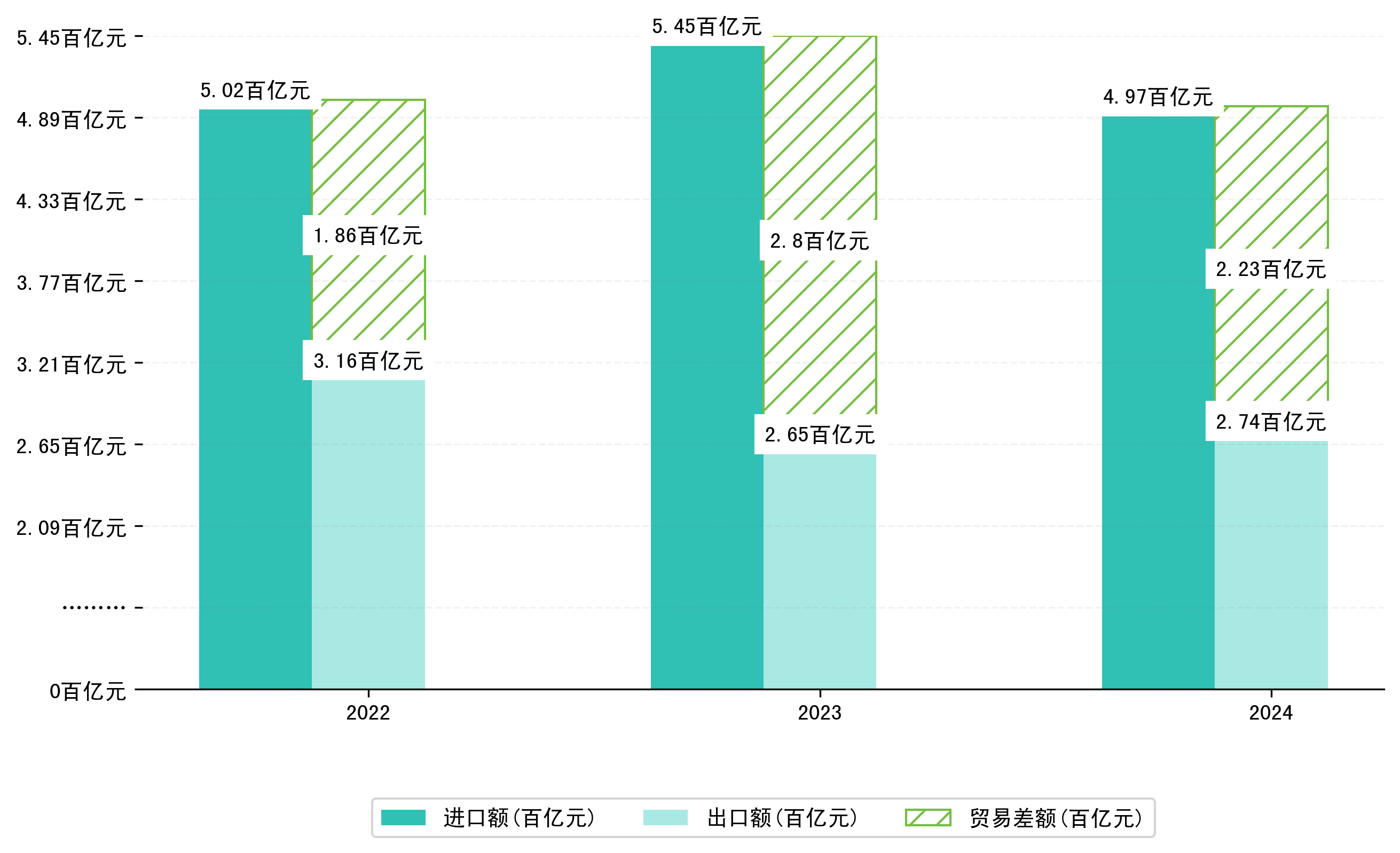 以人民币计,2024年1-4月云南省贸易差额为222,7149,5015万元(贸易逆差),相比上年同期增加了57,3301,3335万元,同比增加-20.47%。
