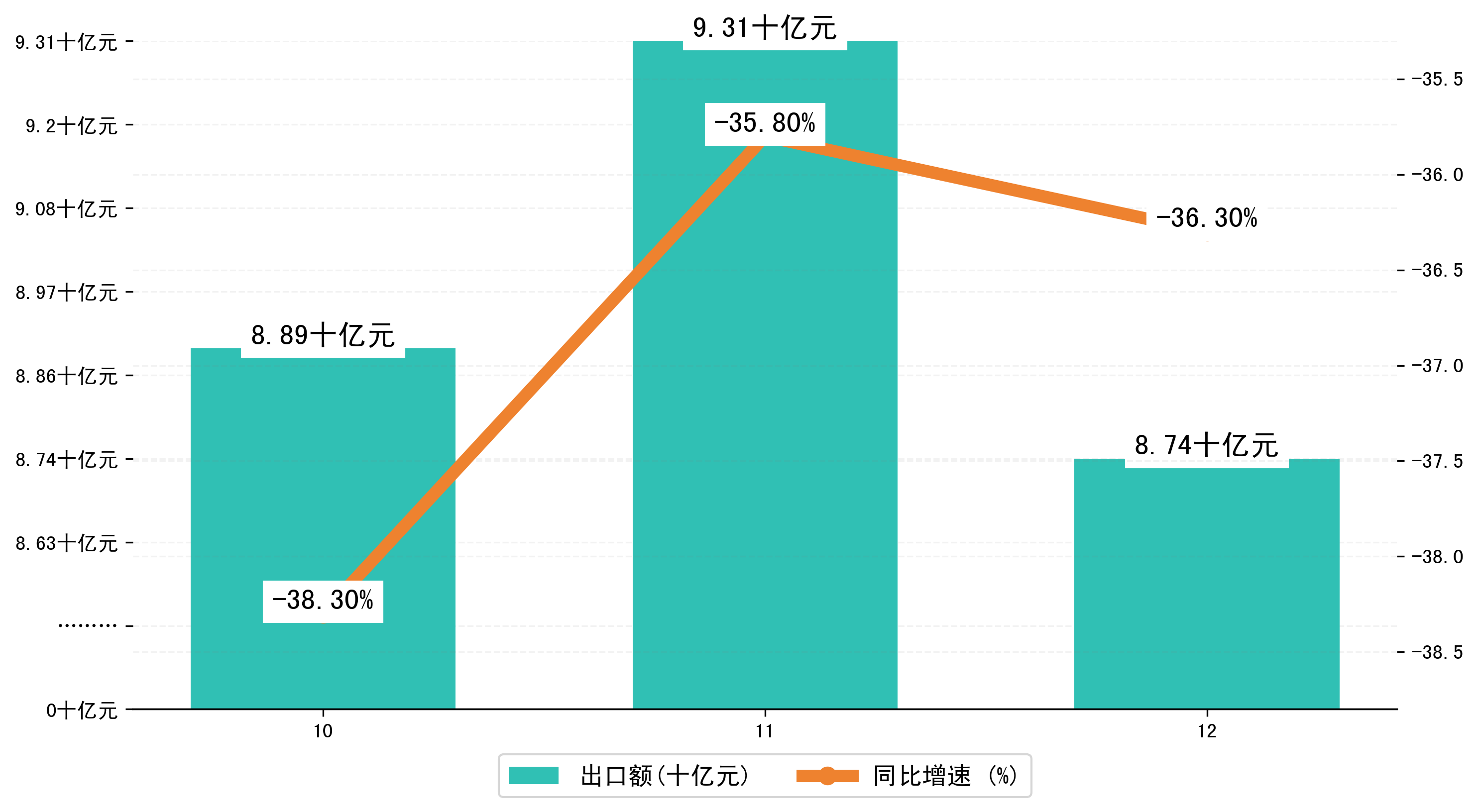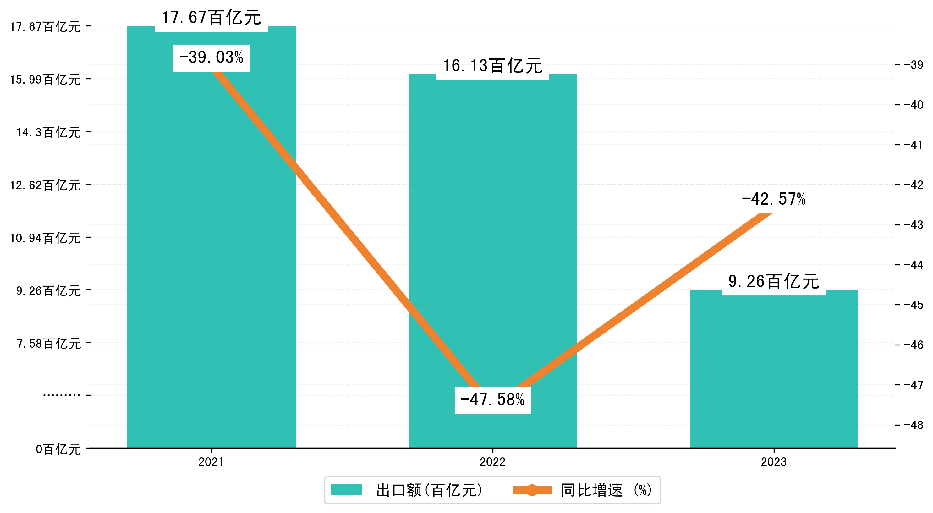 以美元计,2023年1-12月云南省出口额为131,4833.634万美元,相比上年同期减少了109,9026.5709万美元,同比减少-39.60%。