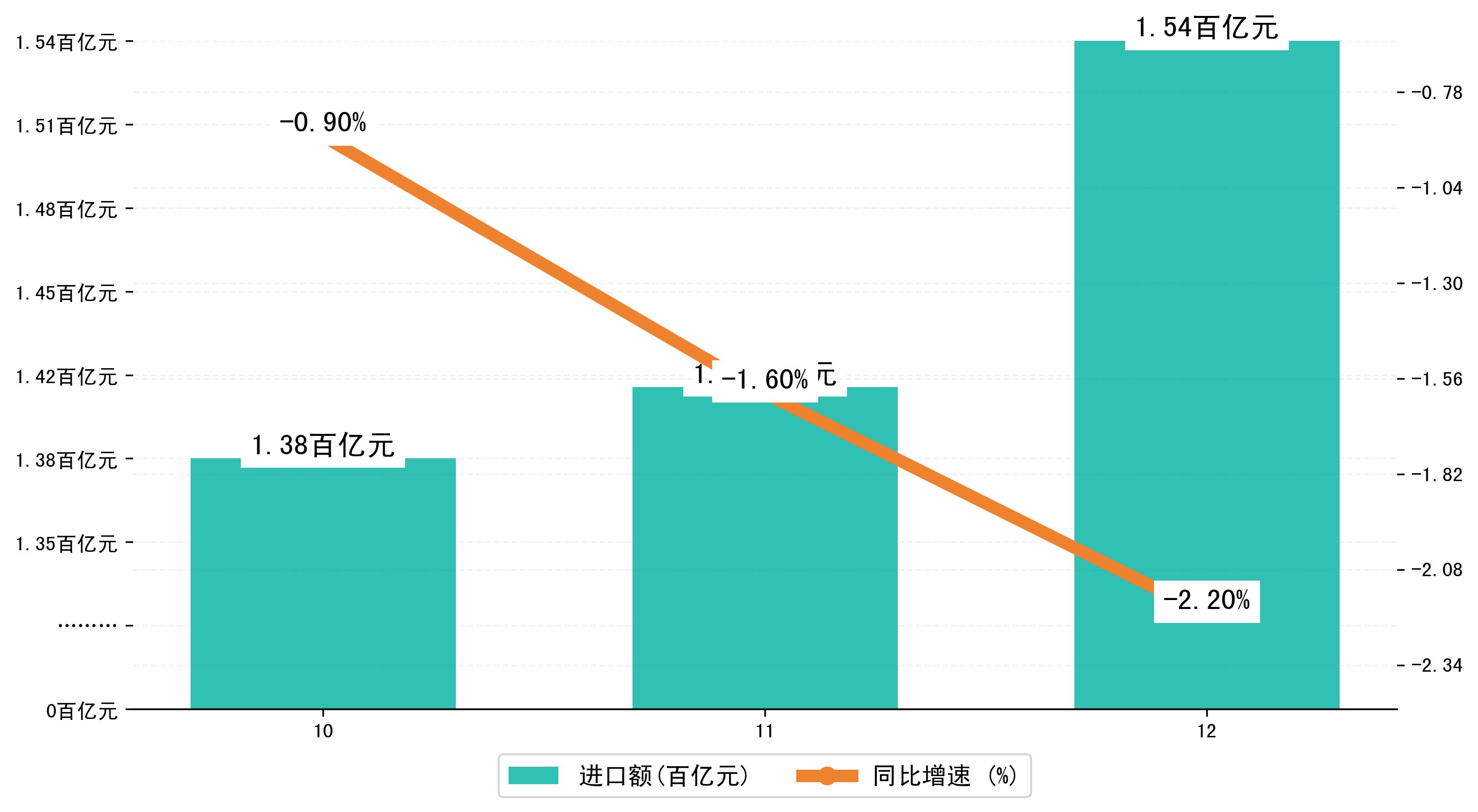 以人民币计,2023年12月云南省进口额为154,4503.6776万元,相比上月增加了13,2851.8319万元;相比上年同期减少了6,1429.8128万元,同比减少了-2.20%。