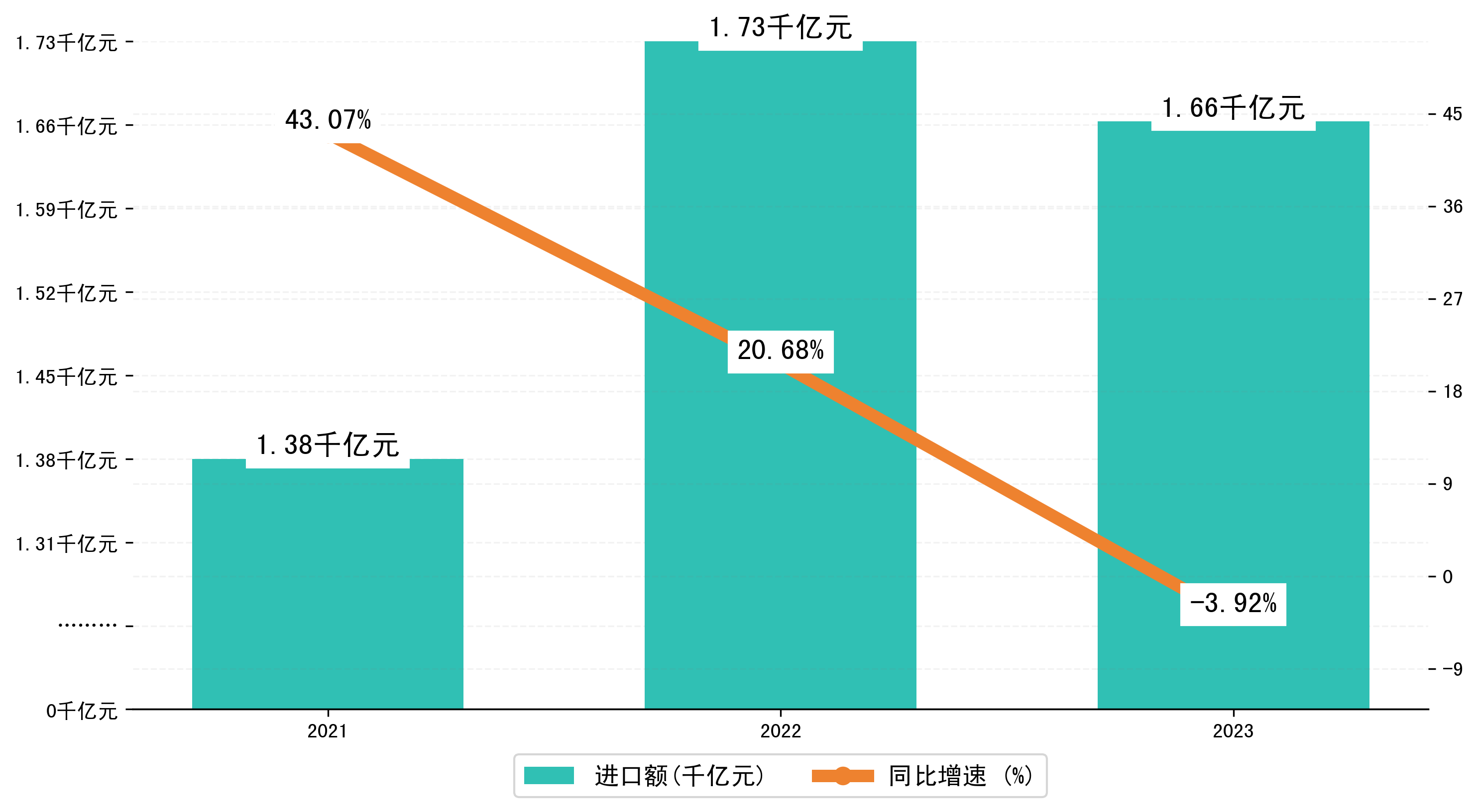 以人民币计,2023年1-12月云南省进口额为1661,9195.0021万元,相比上年同期减少了67,8702.8903万元,同比减少了-2.20%。