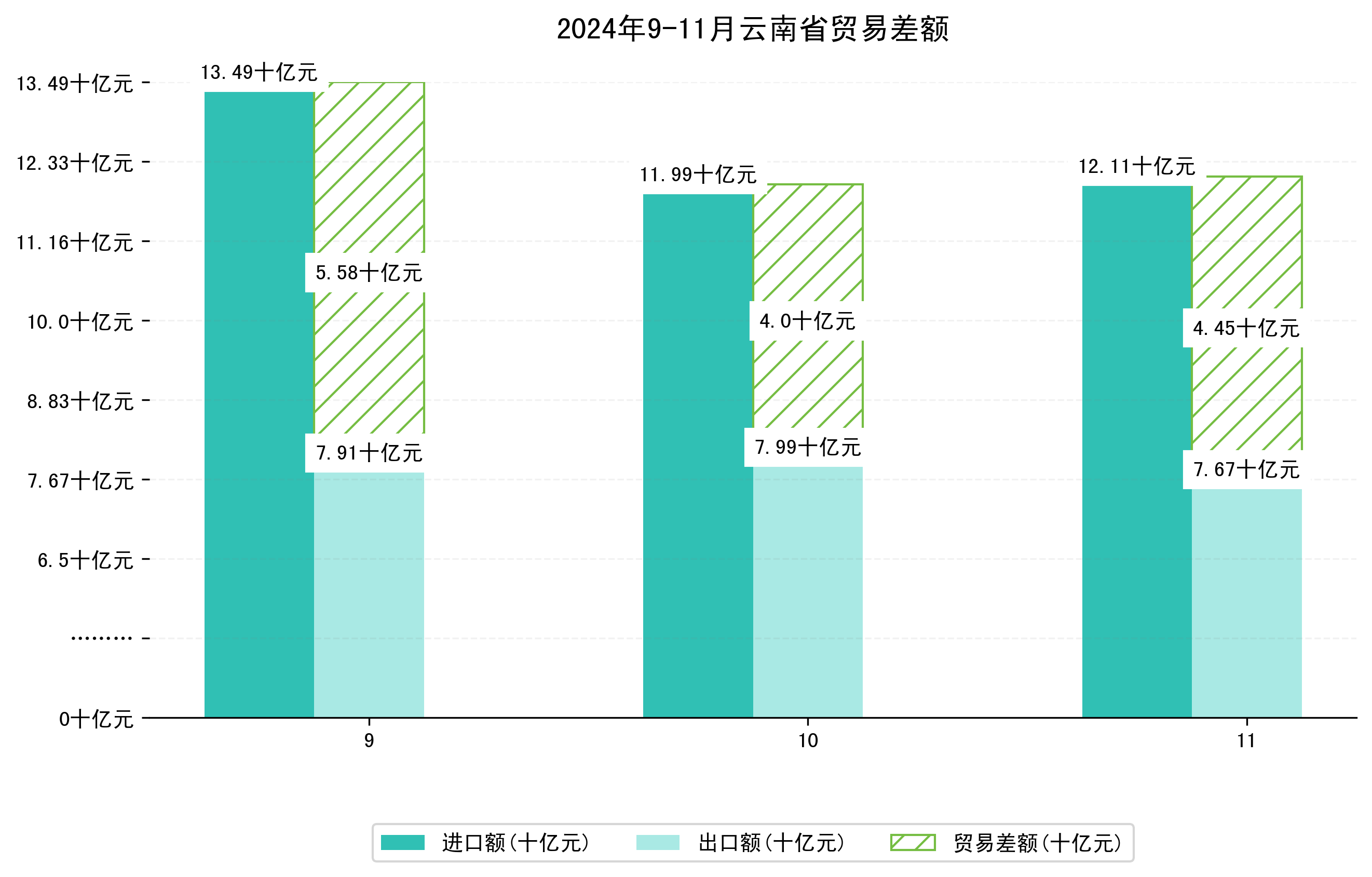 (图一:2024年9-11月云南省进出口总额)