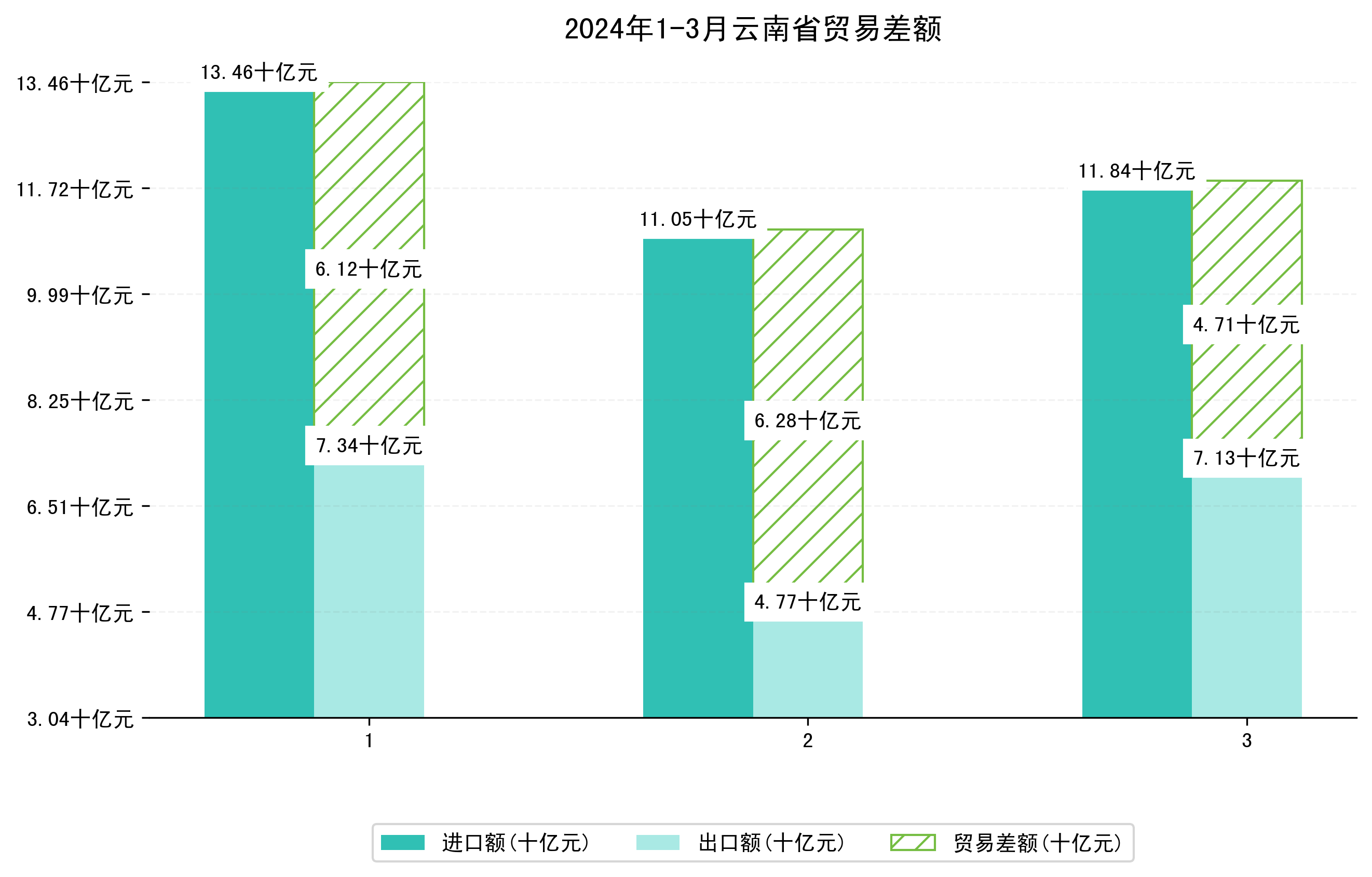 (图一:2024年1-3月云南省进出口总额)