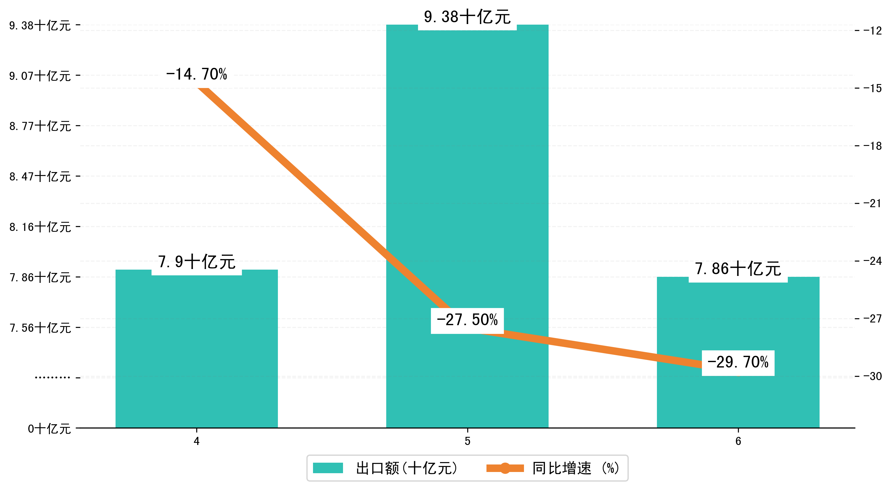 以美元计,2023年1-6月云南省出口额为63,4350.7542万美元,相比上年同期减少了38,0603.5726万美元,同比减少-34.40%。