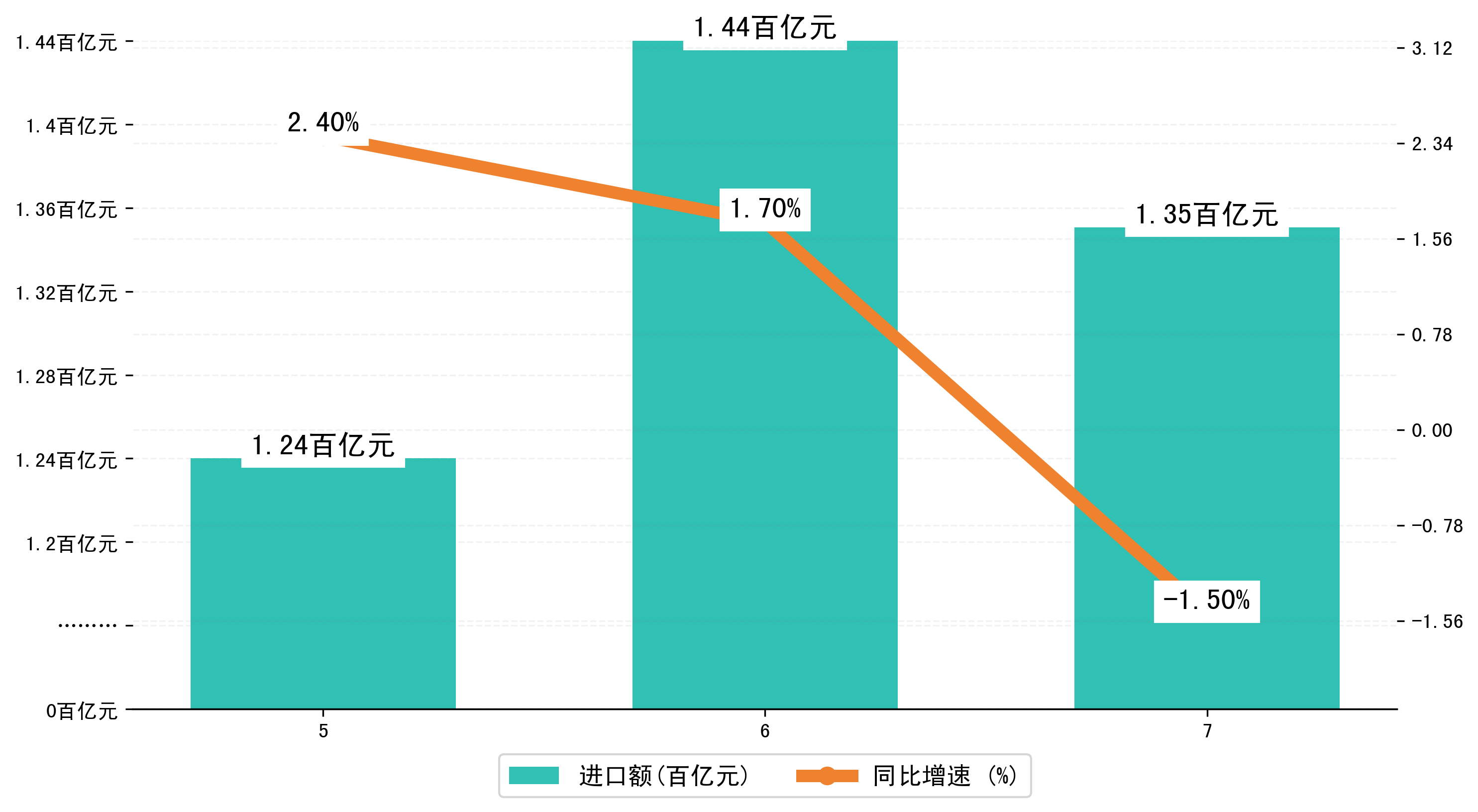 以美元计,2023年1-7月云南省进口额为137,2533.5904万美元,相比上年同期减少了15,9809.2471万美元,同比减少-7.90%。