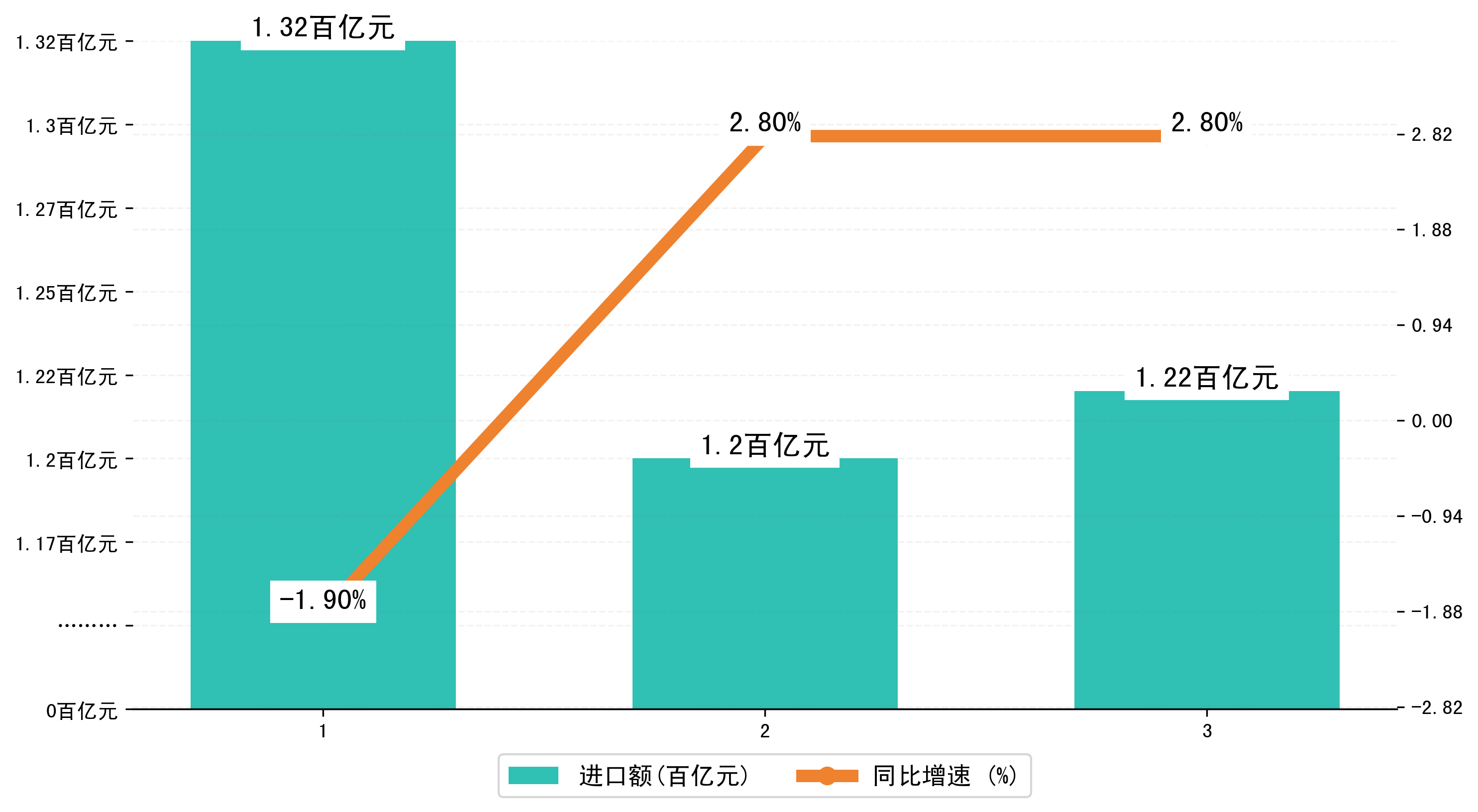 以人民币计,2025年3月云南省进口额为121,9800.6162万元,相比上月增加了2,0151.1783万元;相比上年同期增加了3,5391.0422万元,同比增加了2.80%。