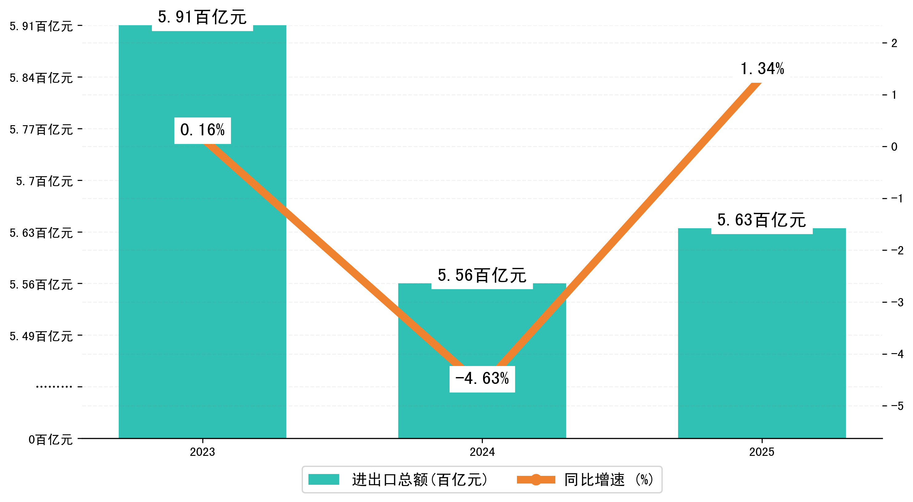 以人民币计,2025年1-3月云南省进出口总额为563,2363.4909万元,相比上年同期增加了7,4584.2668万元,同比增加了1.20%。