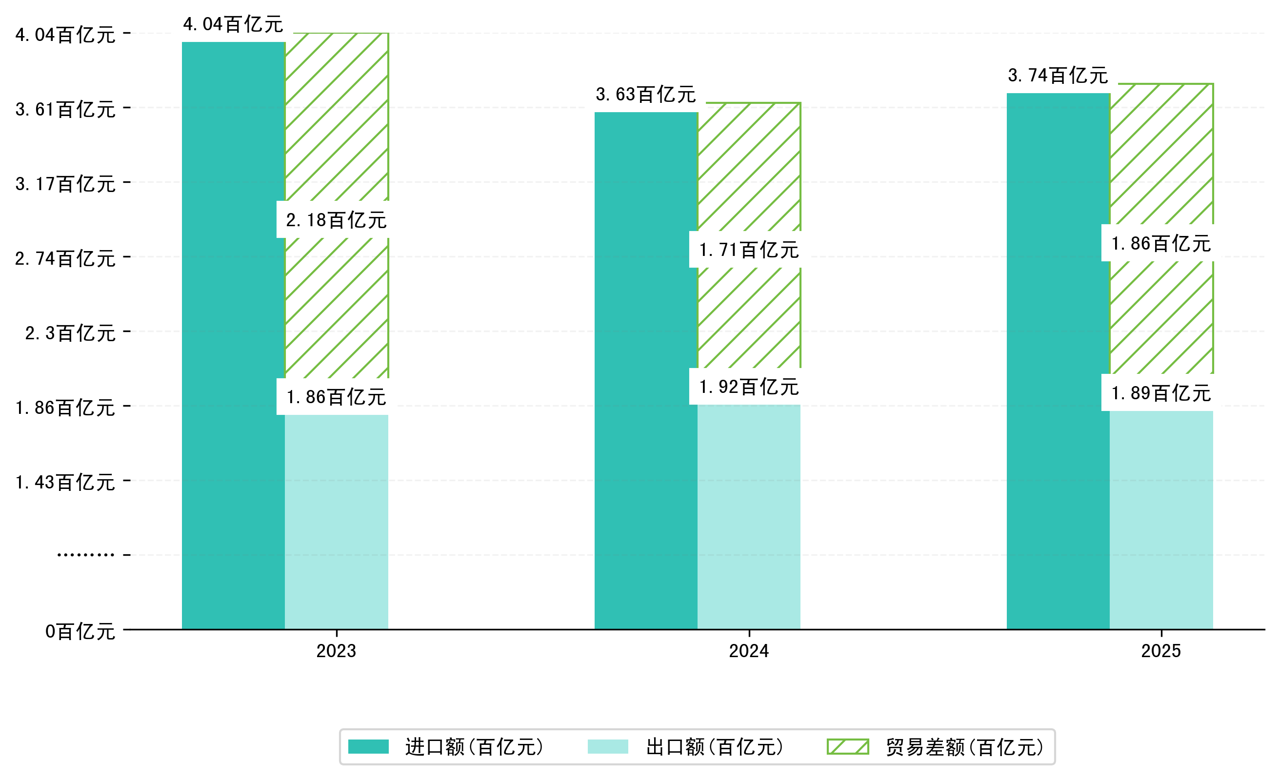 以美元计,2025年1-3月云南省贸易差额为25,8459,9475万美元(贸易逆差),相比上年同期减少了1,7953,0904万美元,同比减少7.46%。