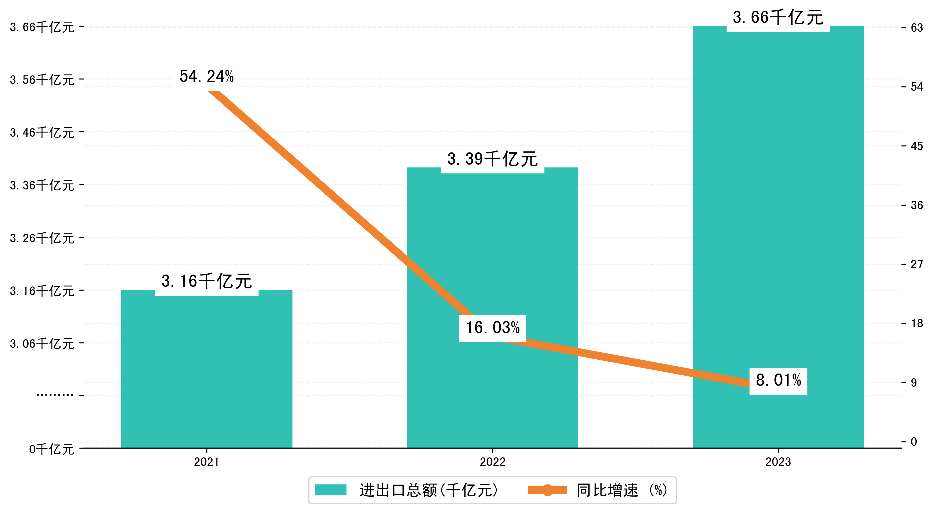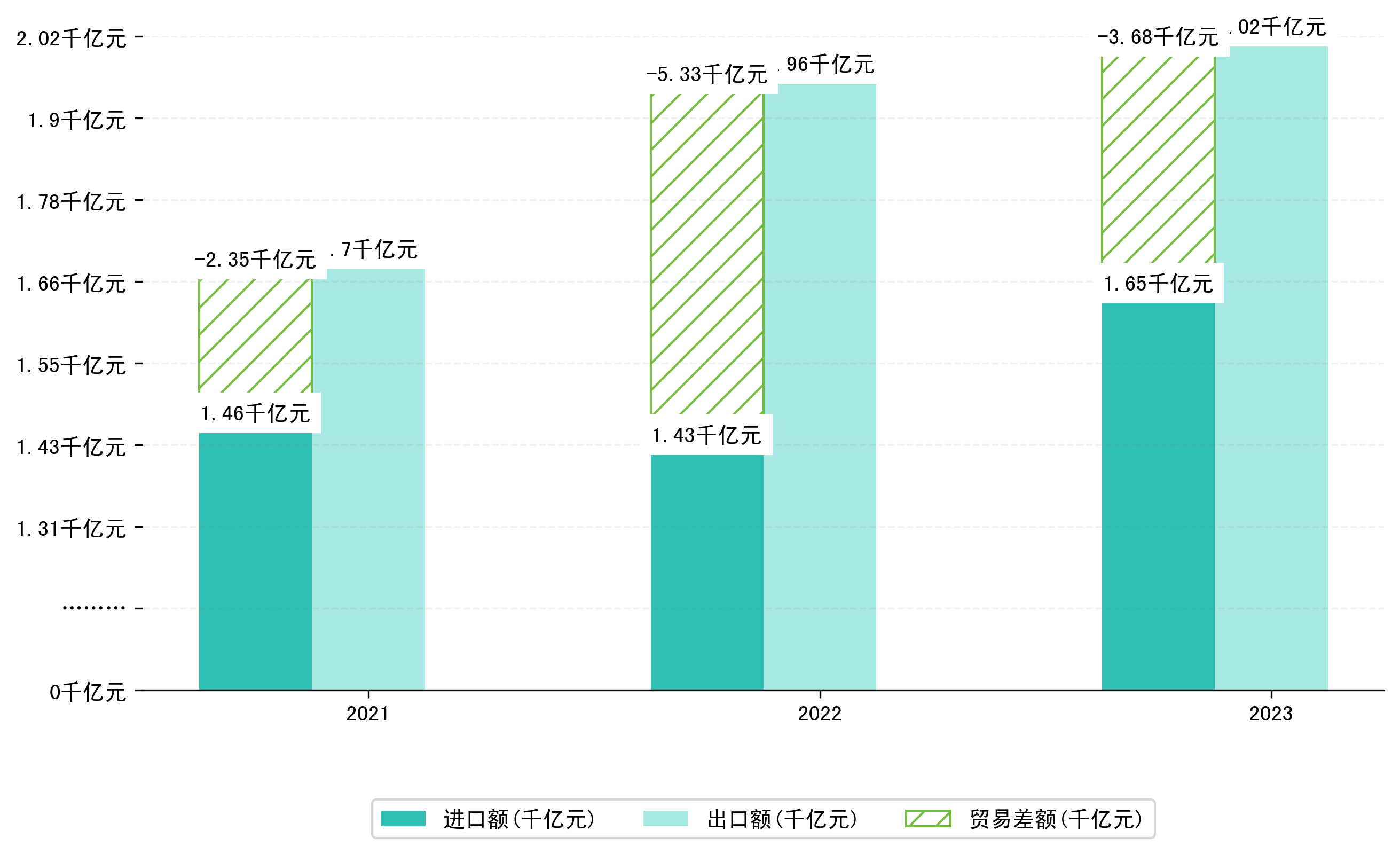 以美元计,2023年1-5月青岛市进口额为239,8923.8405万美元,相比上年同期增加了15,9183.6796万美元,同比增加6.80%。