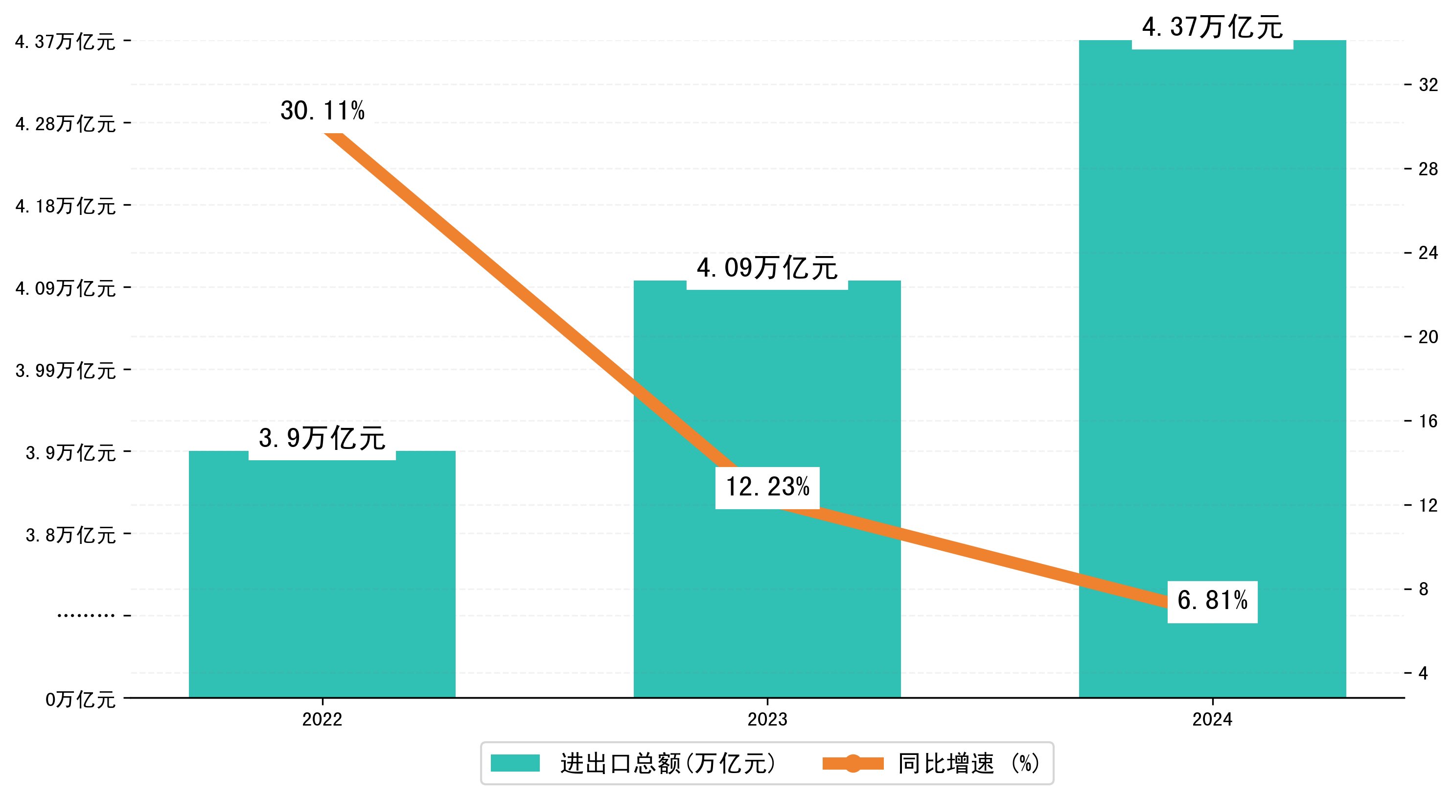 以人民币计,2024年1-10月浙江省进出口总额为4,3733,1810.6195万元,相比上年同期增加了2787,5200.6967万元,同比增加了7.10%。