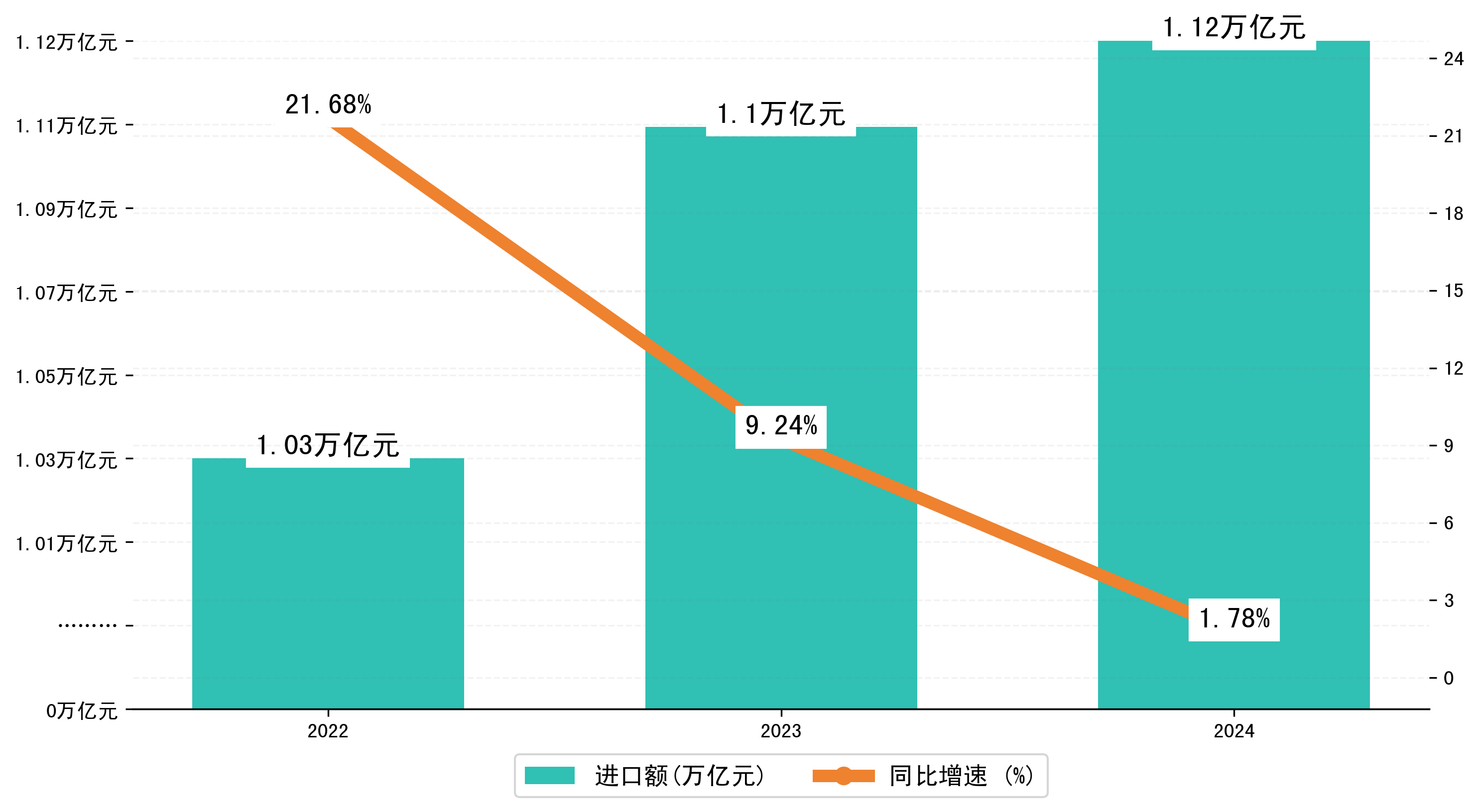 以人民币计,2024年1-10月浙江省进口额为1,1246,6063.8053万元,相比上年同期增加了196,8607.4482万元,同比增加了1.80%。