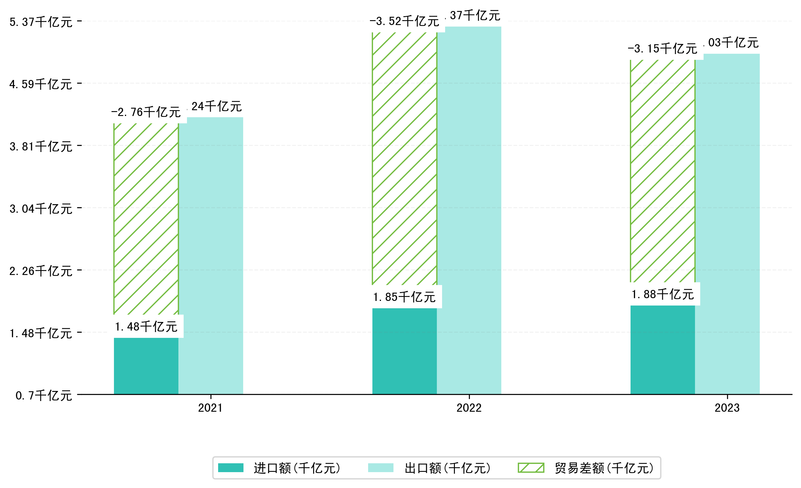 以人民币计,2023年1-2月浙江省贸易差额为3145,3686,2406万元(贸易顺差),相比上年同期减少了374,4785,2255万元,同比减少-10.64%。