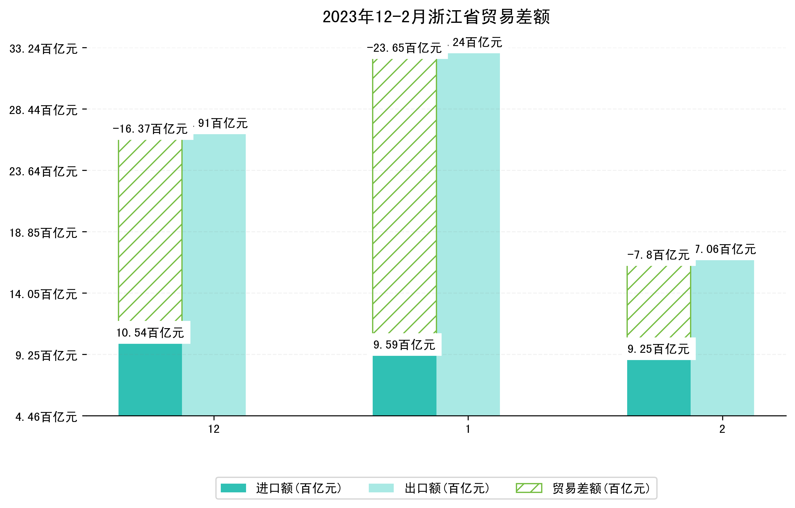 2023年2月浙江省进出口总额及进出口差额统计分析