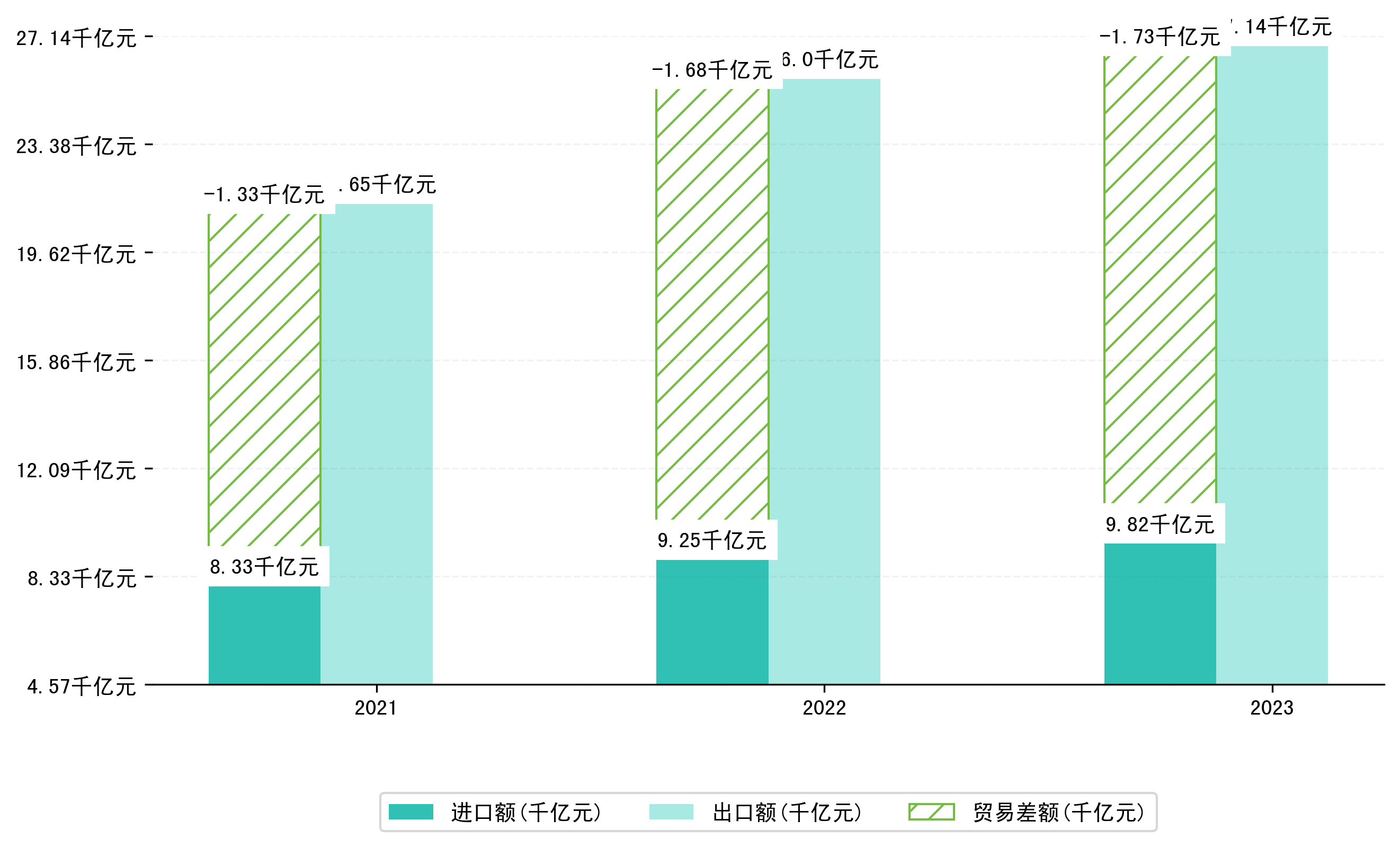 以人民币计,2023年1-9月浙江省贸易差额为1,7327,4349,7377万元(贸易顺差),相比上年同期增加了574,8177,4523万元,同比增加3.43%。