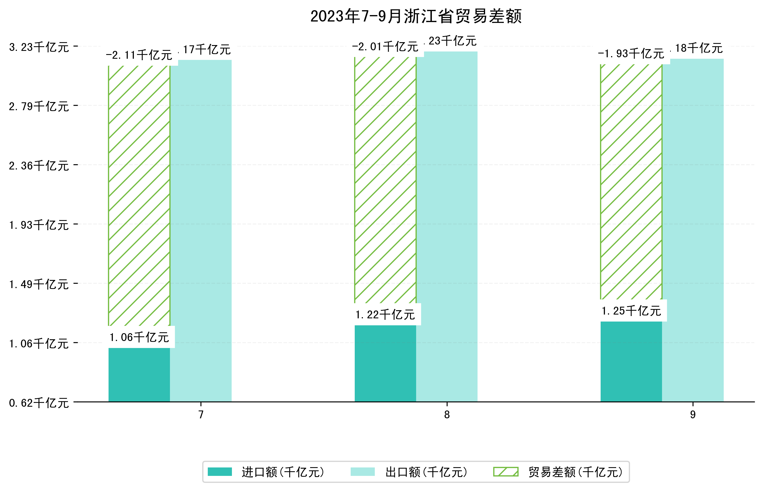 2023年9月浙江省进出口总额及进出口差额统计分析