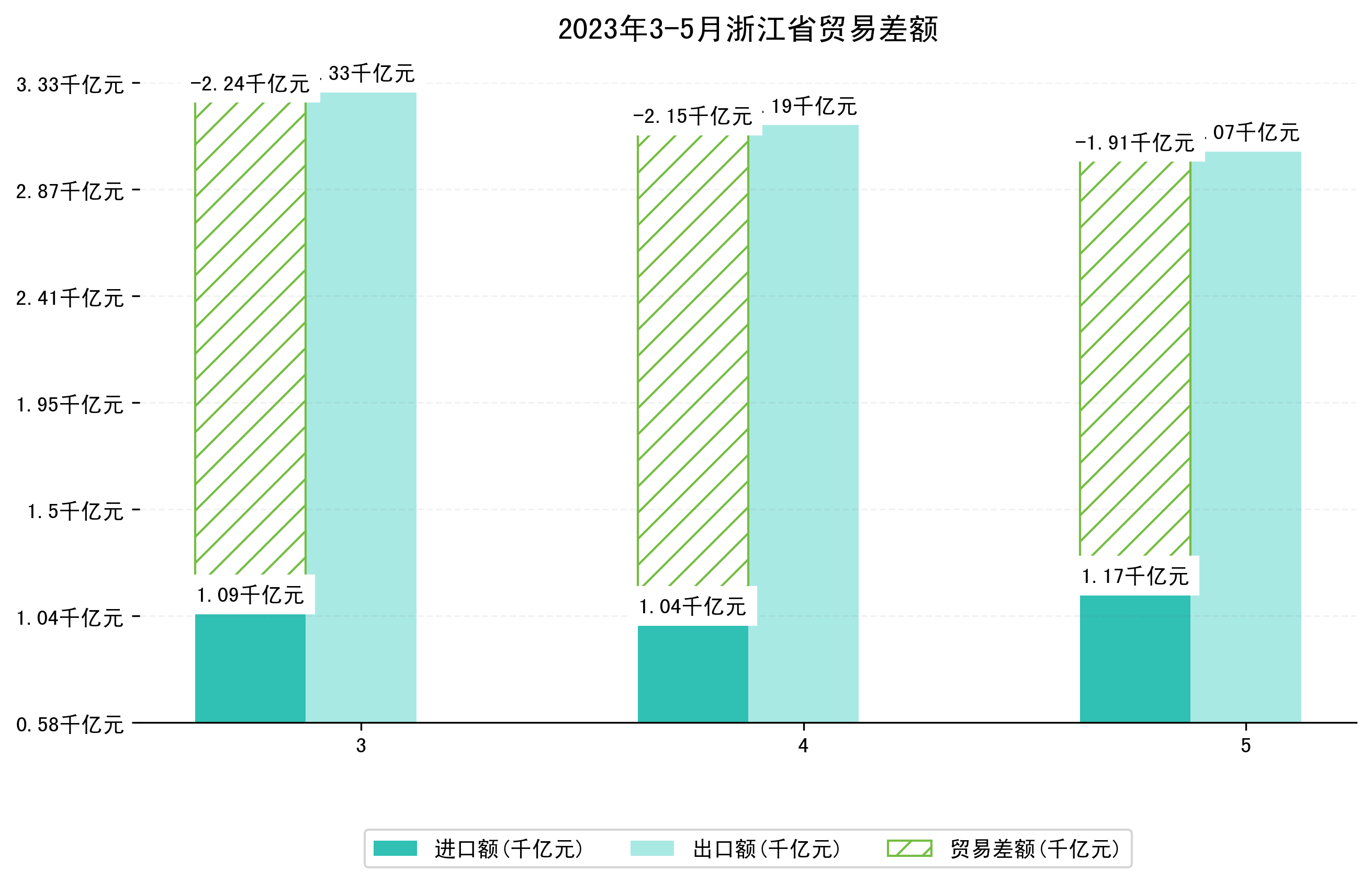 2023年5月浙江省进出口总额及进出口差额统计分析