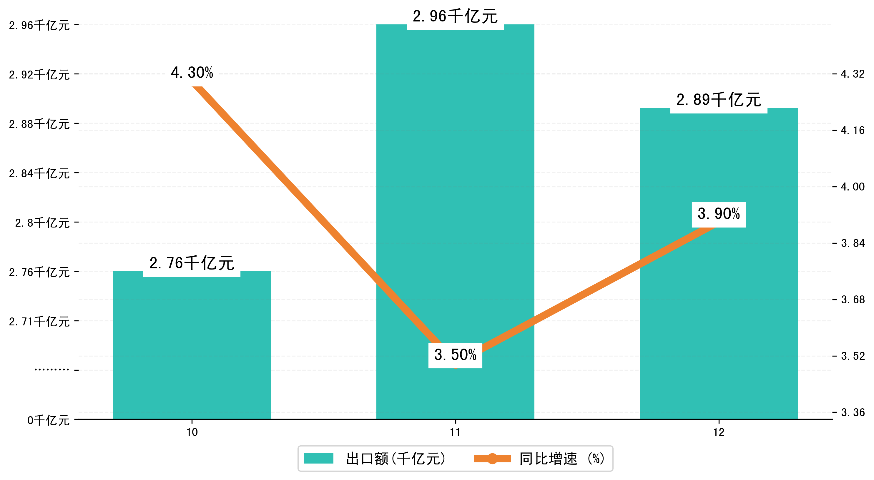 以人民币计,2023年12月浙江省出口额为2892,9535.9038万元,相比上月减少了70,2297.9166万元;相比上年同期增加了201,6259.3109万元,同比增加了3.90%。
