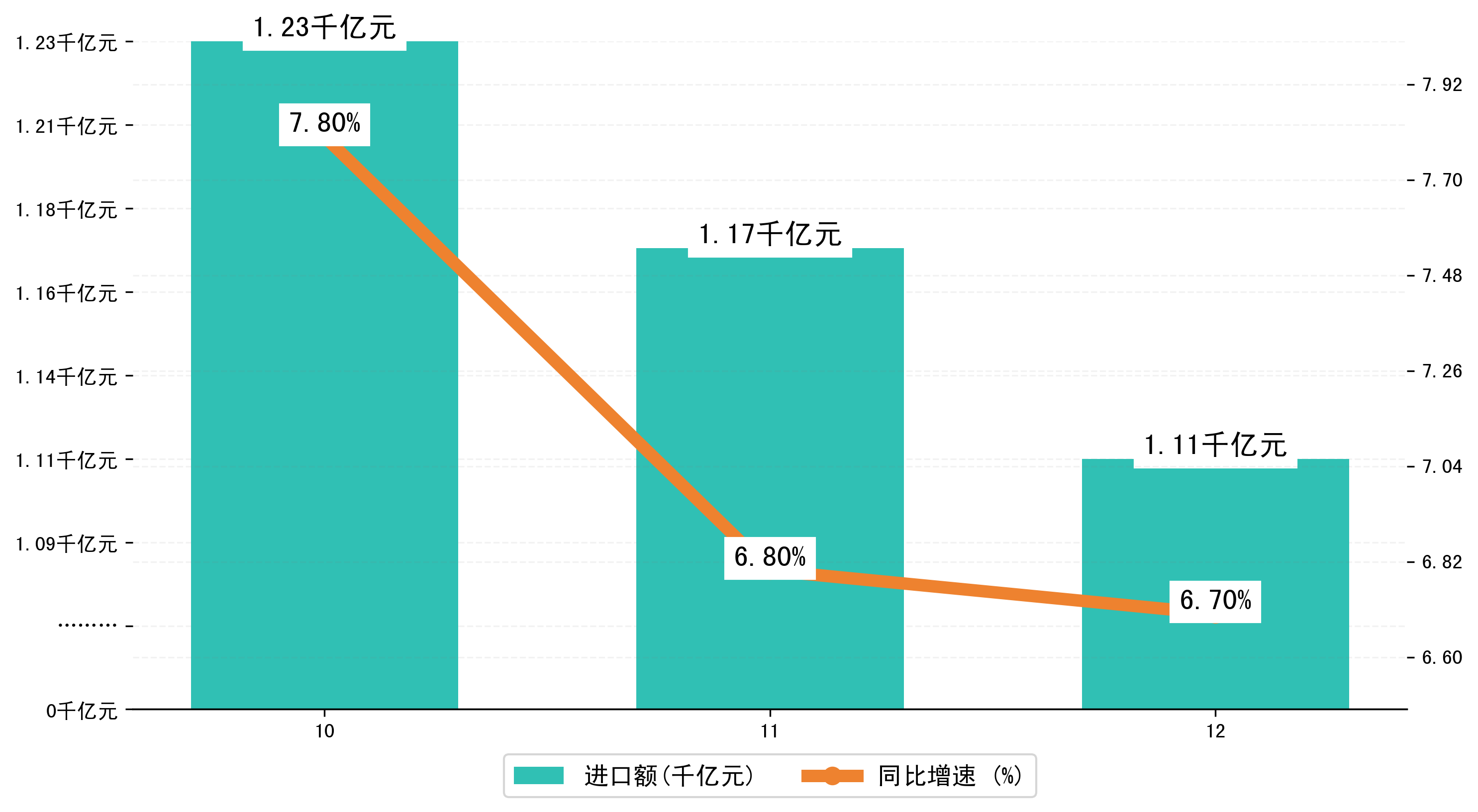 以美元计,2023年1-12月浙江省进口额为1894,7888.4469万美元,相比上年同期增加了18,3345.5282万美元,同比增加1.10%。