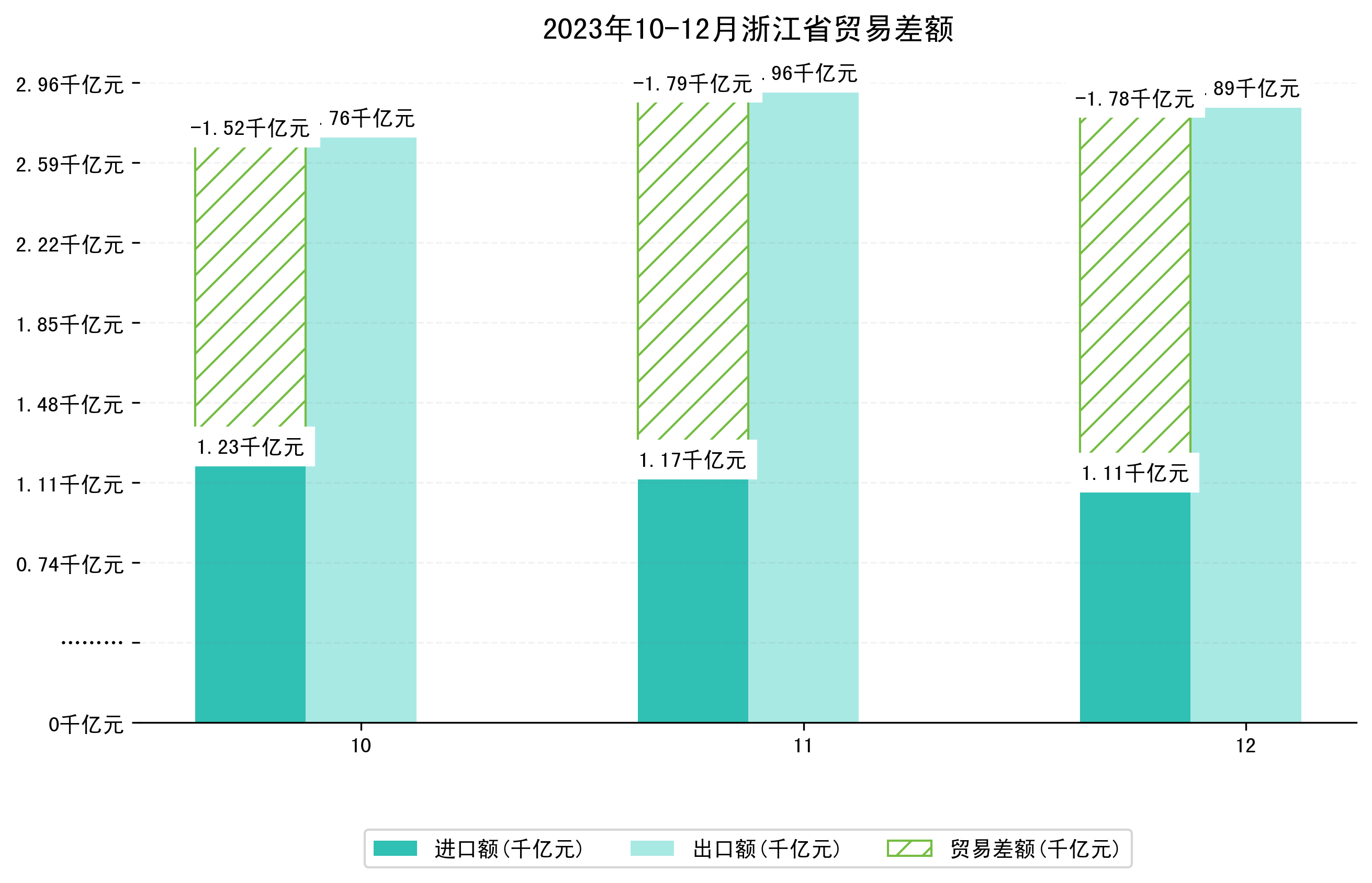 2023年12月浙江省进出口总额及进出口差额统计分析