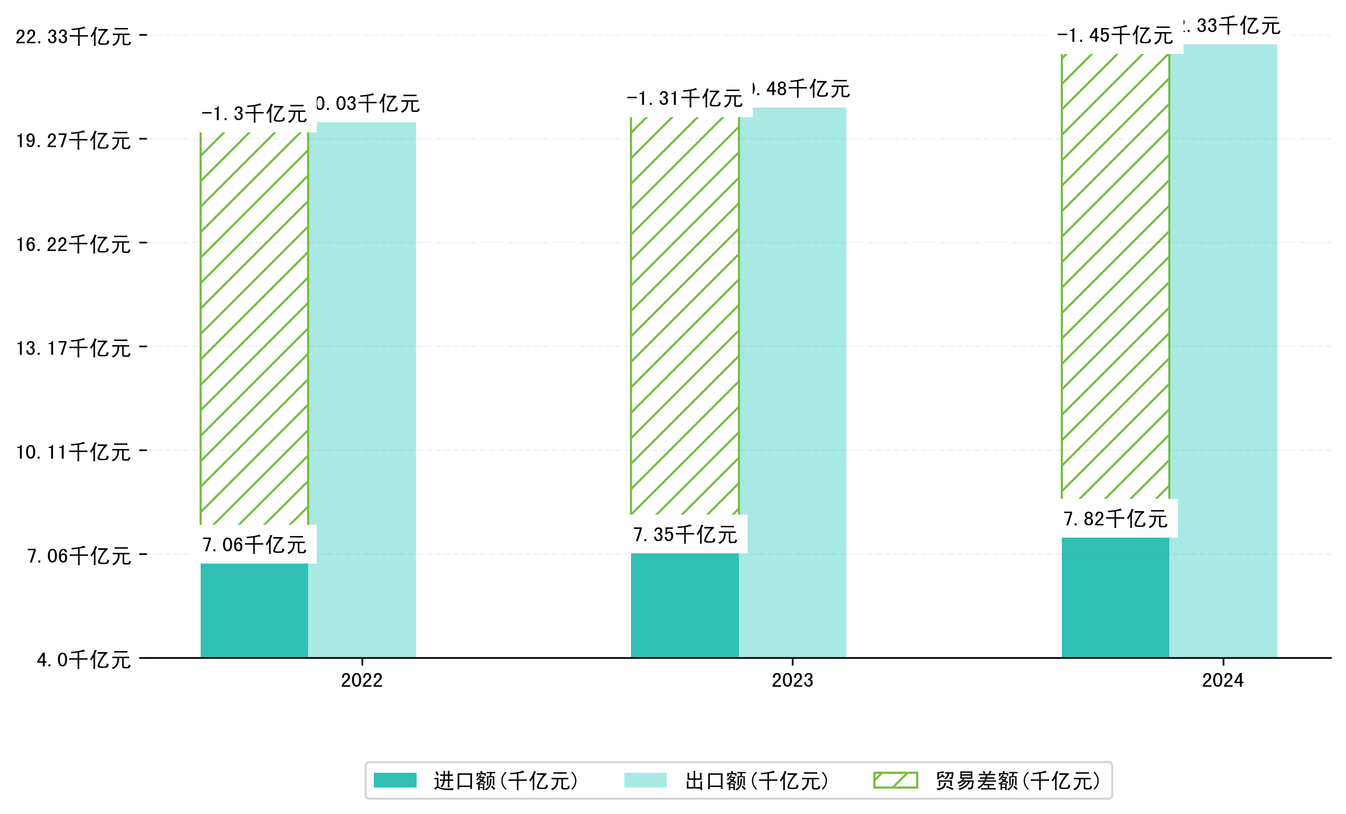 以美元计,2024年1-7月浙江省贸易差额为2041,3943,8918万美元(贸易顺差),相比上年同期增加了148,3315,6773万美元,同比增加7.84%。