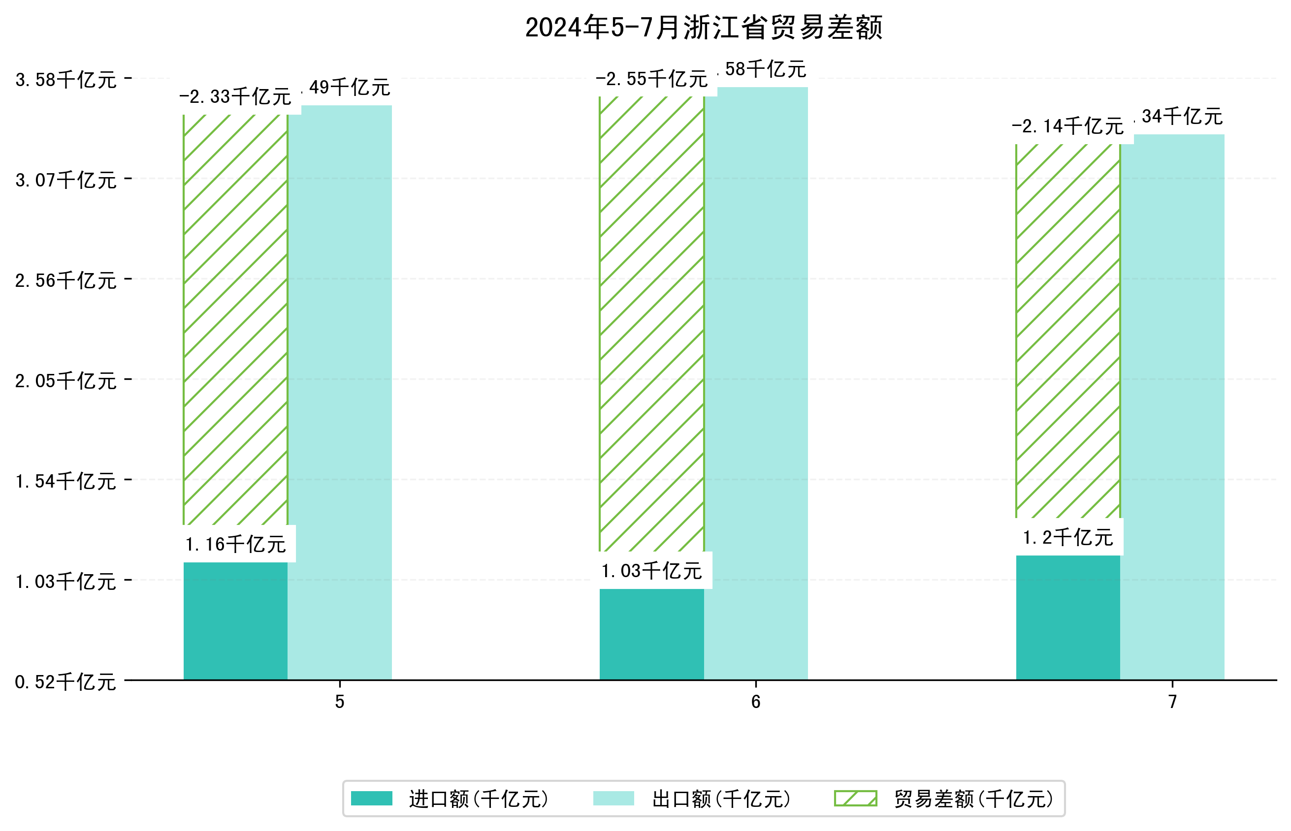 2024年7月浙江省进出口总额及进出口差额统计分析