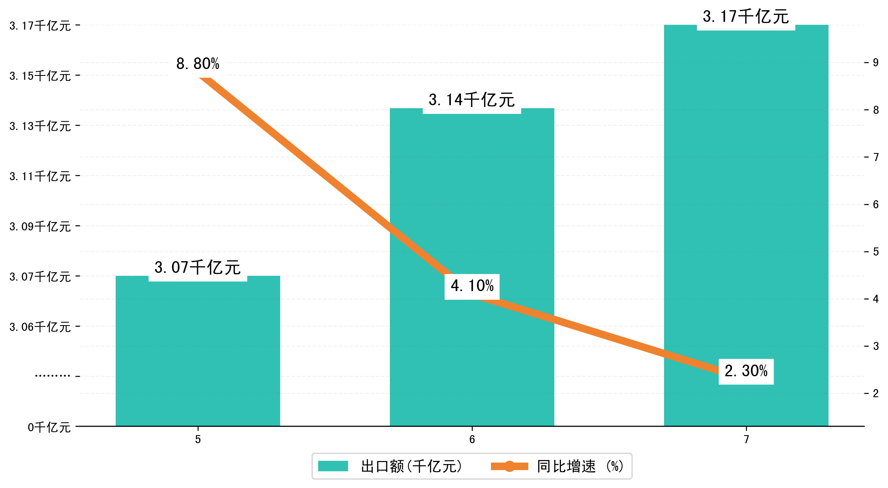 以人民币计,2023年7月浙江省出口额为3166,0798.8882万元,相比上月增加了30,5044.9161万元;相比上年同期减少了232,1239.144万元,同比增加了2.30%。