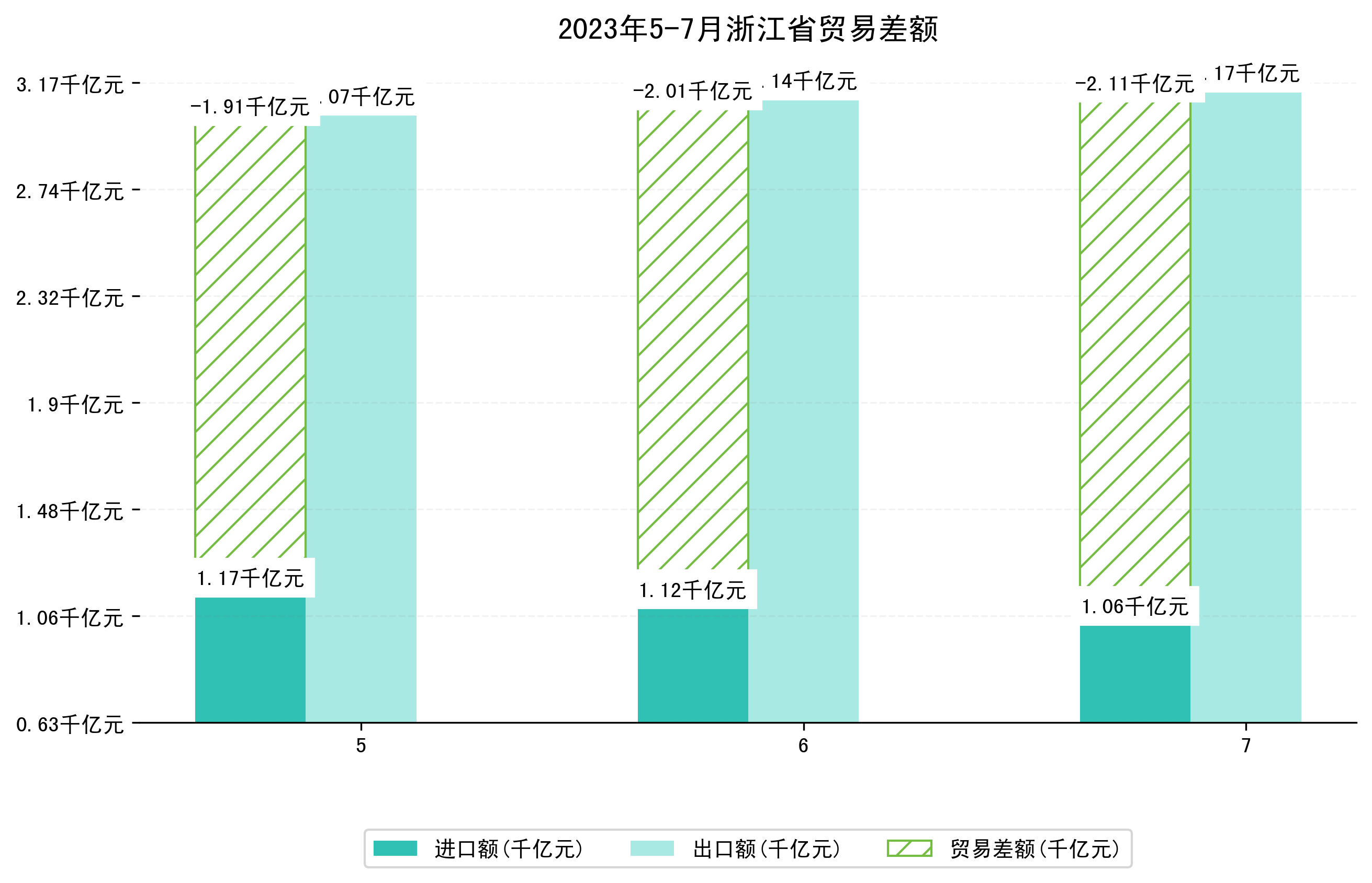 2023年7月浙江省进出口总额及进出口差额统计分析