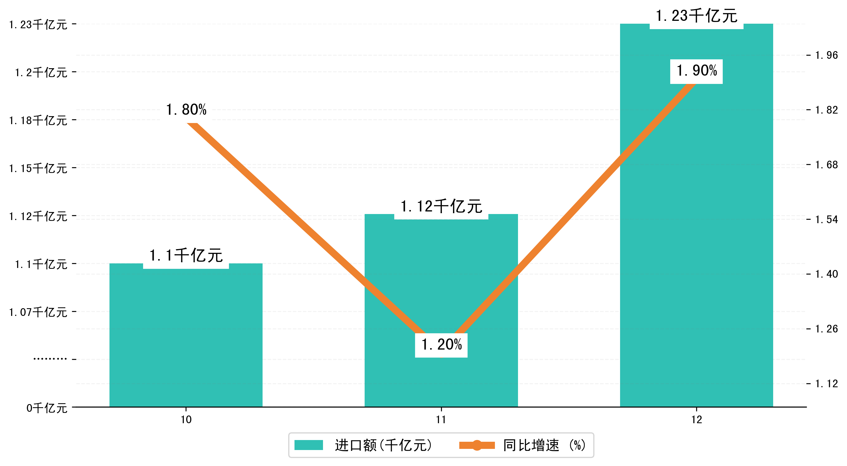 以人民币计,2024年12月浙江省进口额为1229,9808.6855万元,相比上月增加了105,8204.1197万元;相比上年同期增加了117,7515.4674万元,同比增加了1.90%。
