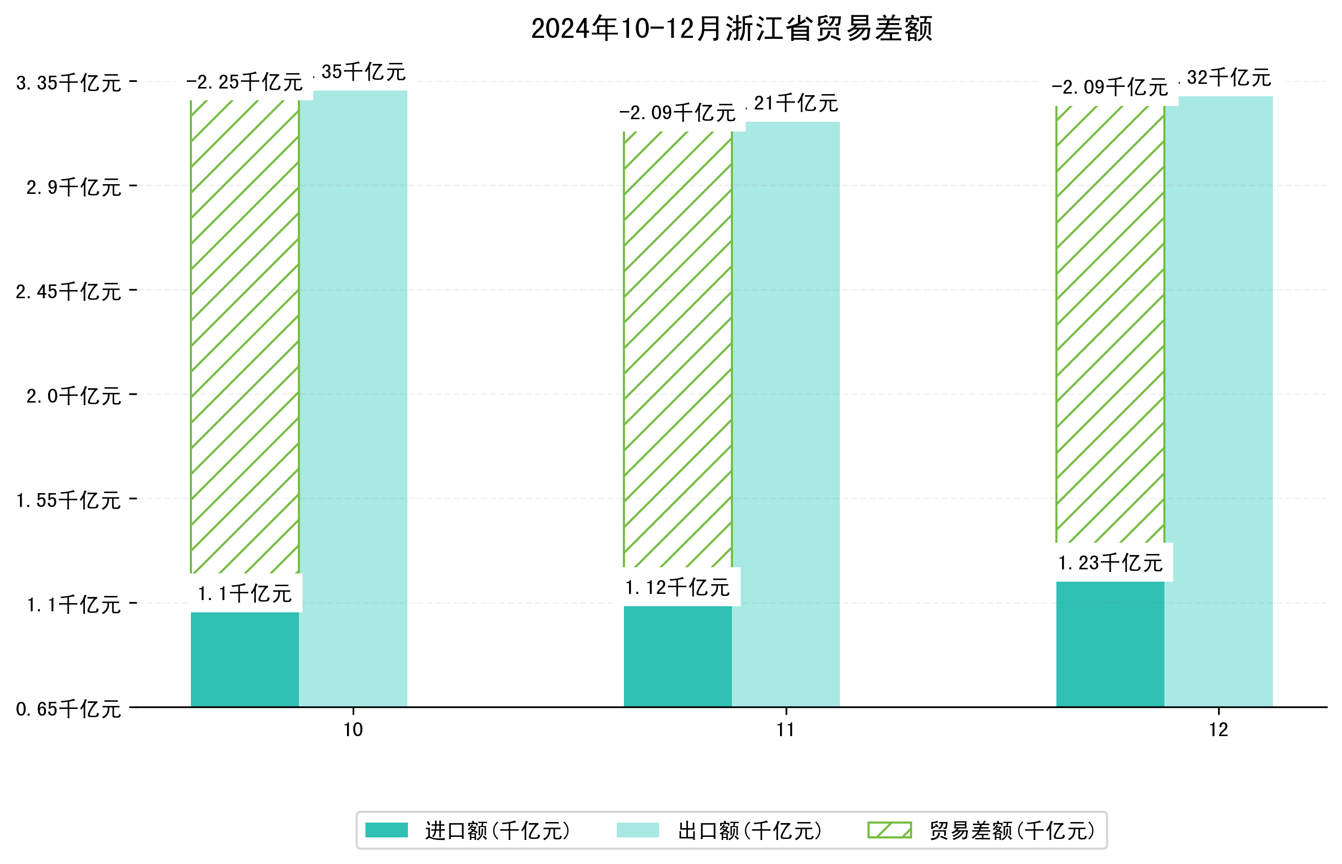 2024年12月浙江省进出口总额及进出口差额统计分析