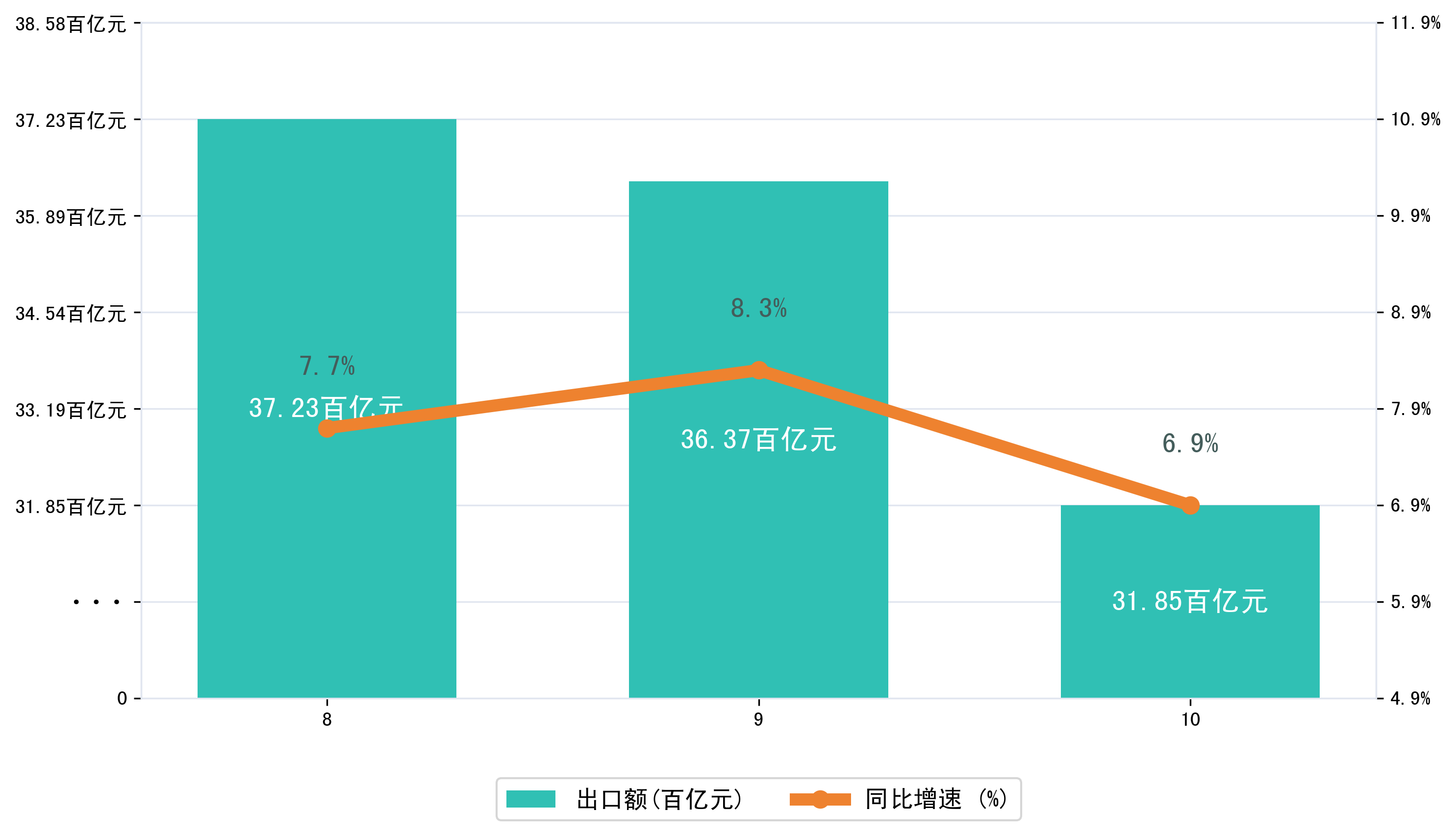 (图二:2025年8-10月浙江省出口额)