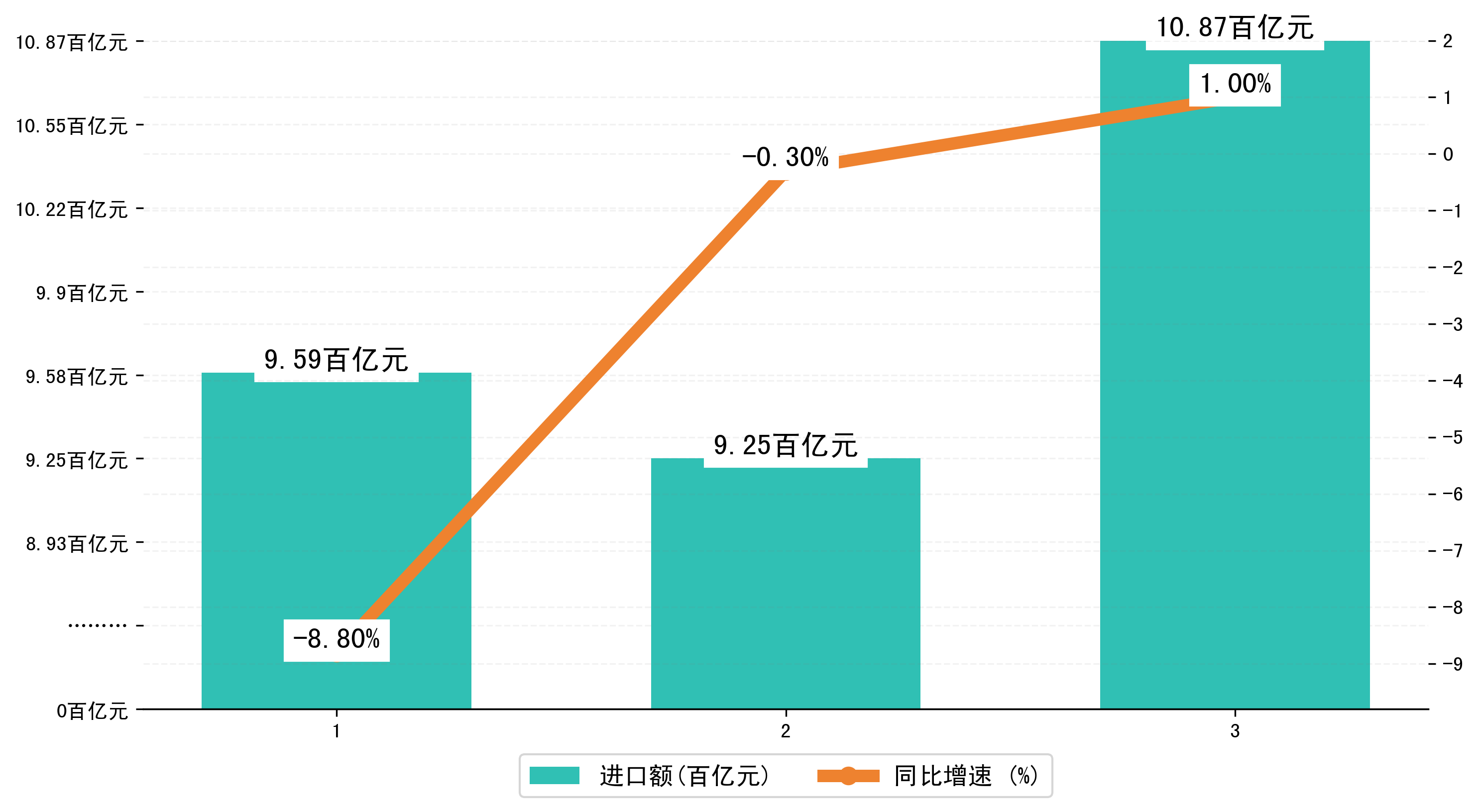 以人民币计,2023年3月浙江省进口额为1087,0855.8183万元,相比上月增加了161,6338.1097万元;相比上年同期增加了50,7260.008万元,同比增加了1.00%。