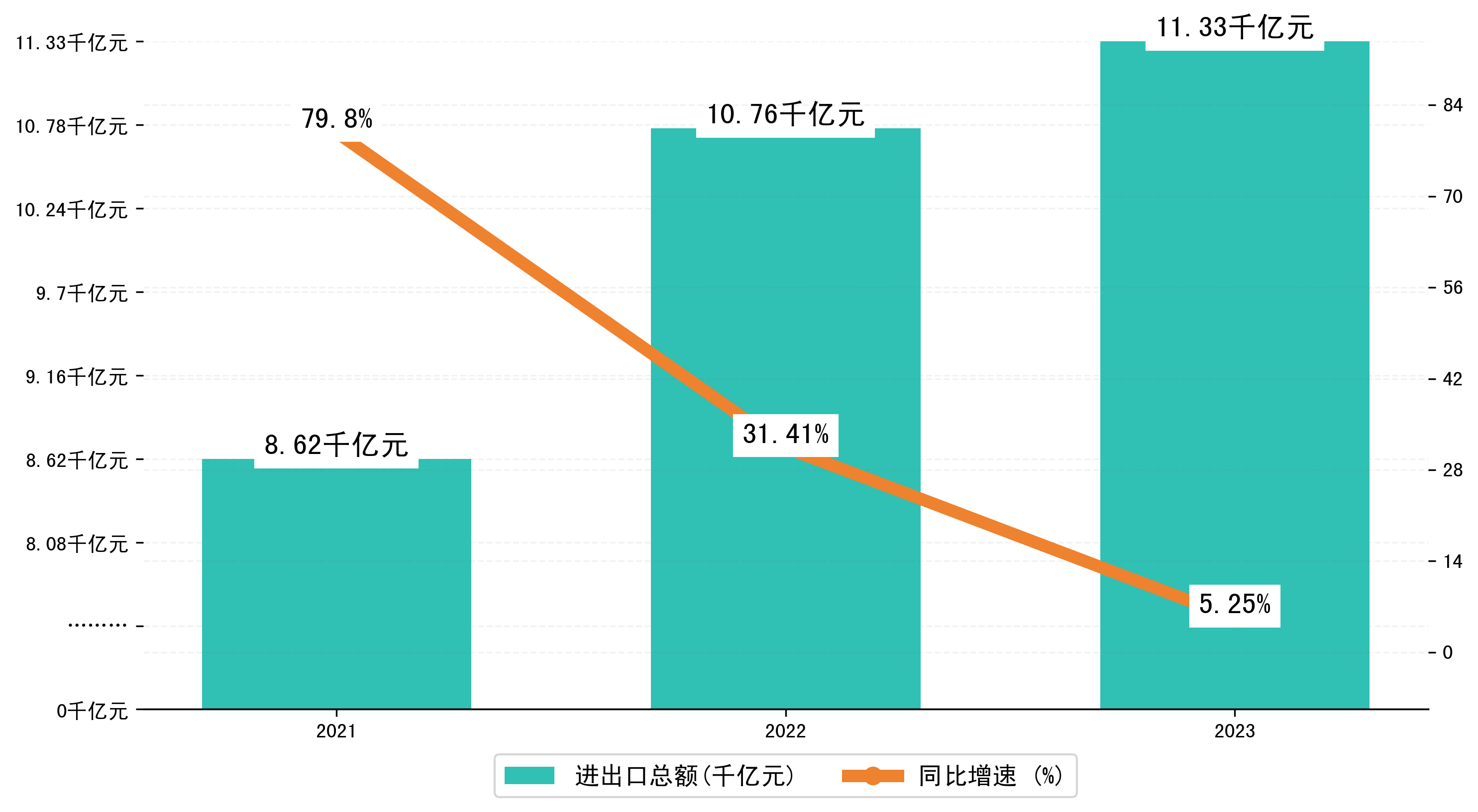 以人民币计,2023年1-3月浙江省进出口总额为1,1326,0330.8771万元,相比上年同期增加了564,4945.3826万元,同比增加了4.80%。