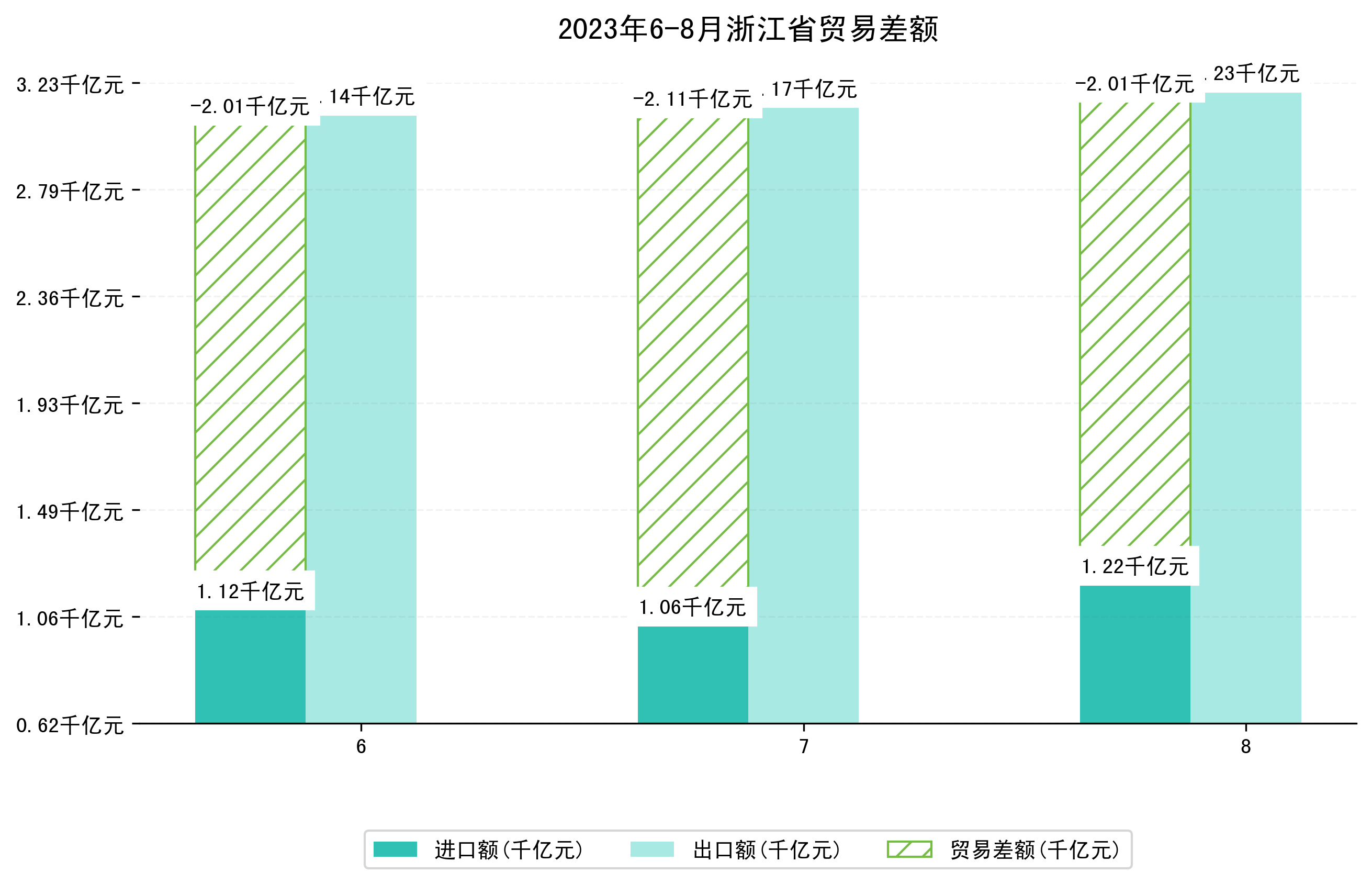 (图四:2023年6-8月浙江省贸易差额)